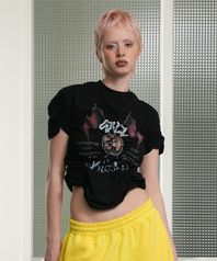 RACING FLAG SHIRRING T-SHIRTS [BLACK]
