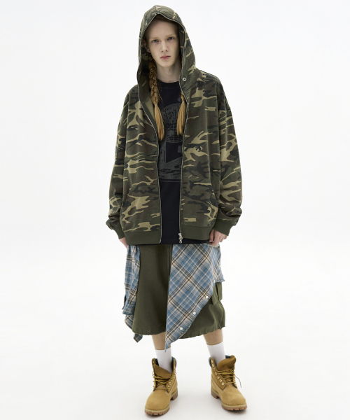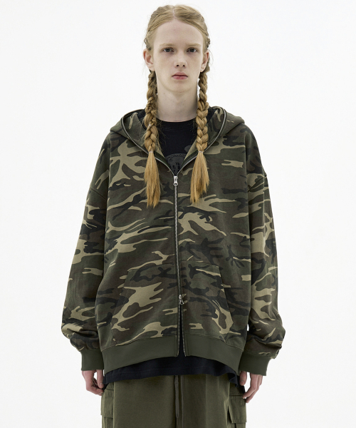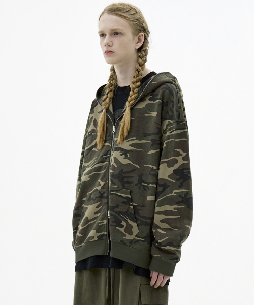 자이언트핏 솔리드 후드집업 (카모베이지)