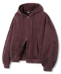 빈티지 스터드 피그먼트 2WAY 후드 집업_레드