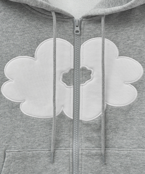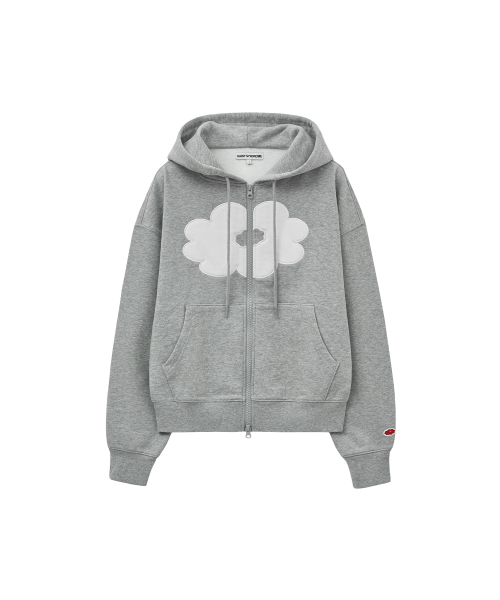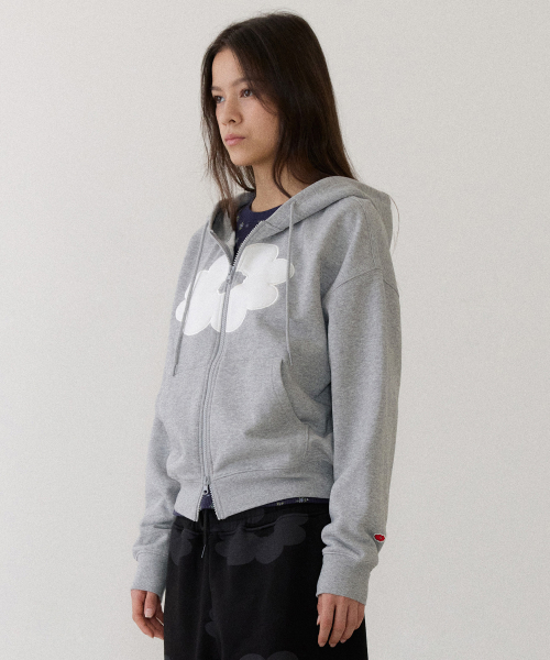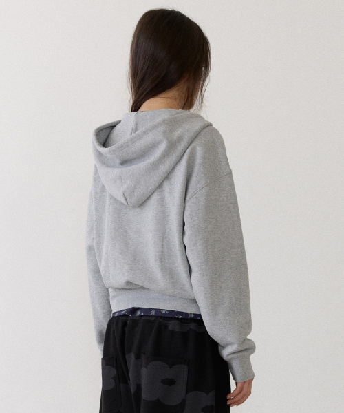 FLORAL CROPPED HOODIE ZIP-UP melange gray