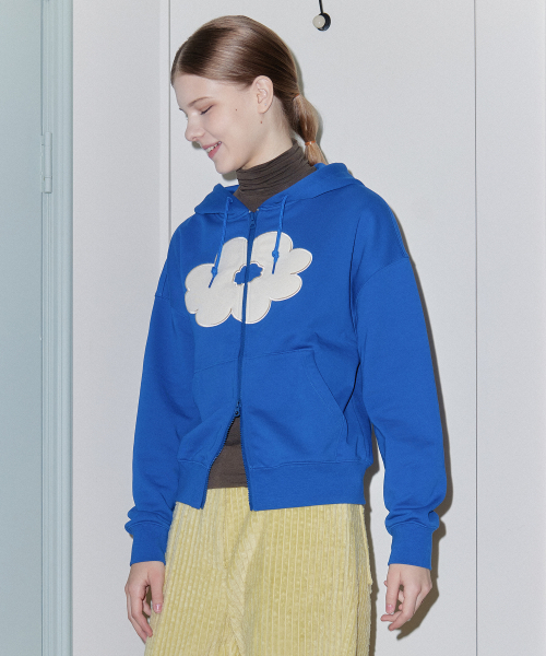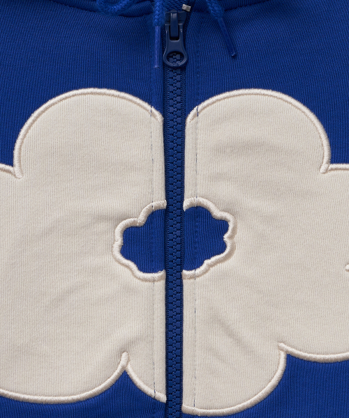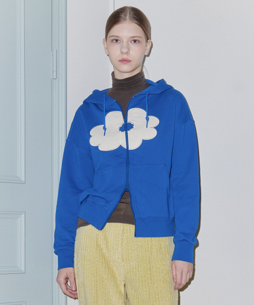 FLORAL CROPPED HOODIE ZIP-UP blue