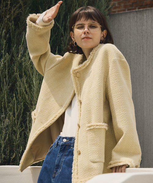 O3735 라운드 트위드 재킷_Yellow