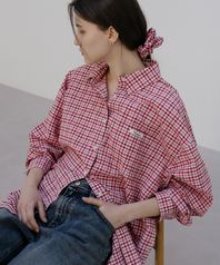 [스크런치 SET] Ray overfit check shirt [TISP05SH01]_Red