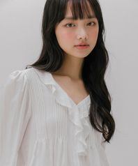프릴 넥 핀턱 블라우스 (화이트)