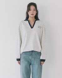 STRIPE V-NECK COLLAR L/S TEE(IVORY)