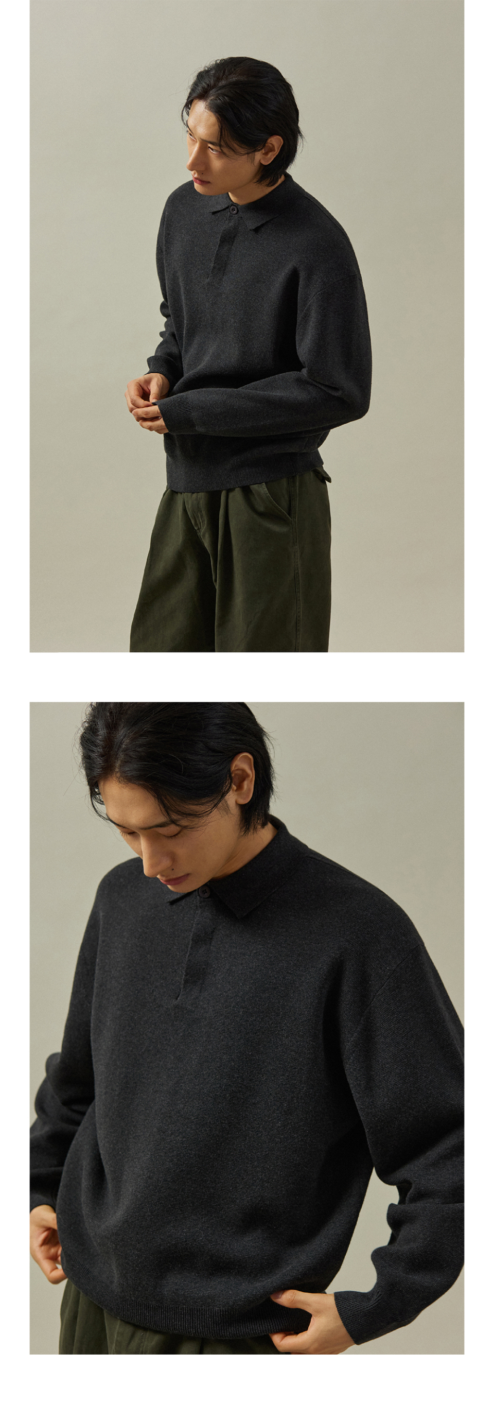 멀티 스트라이프 긴소매 폴로 셔츠 [네이비]