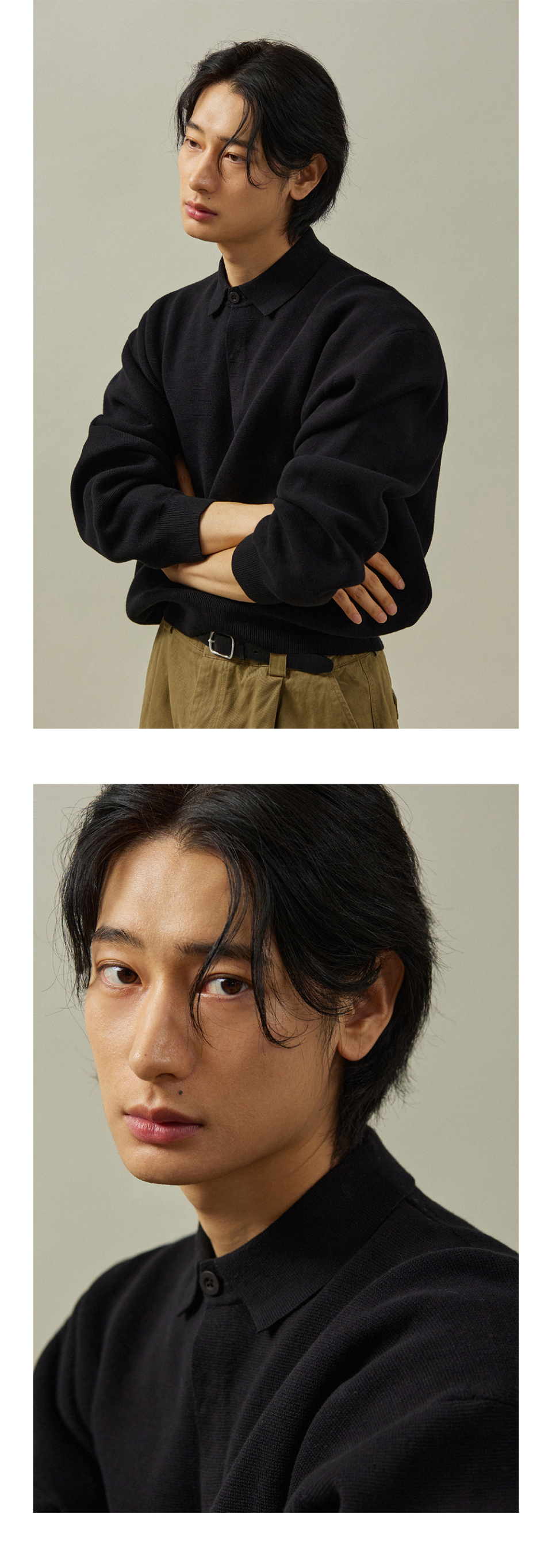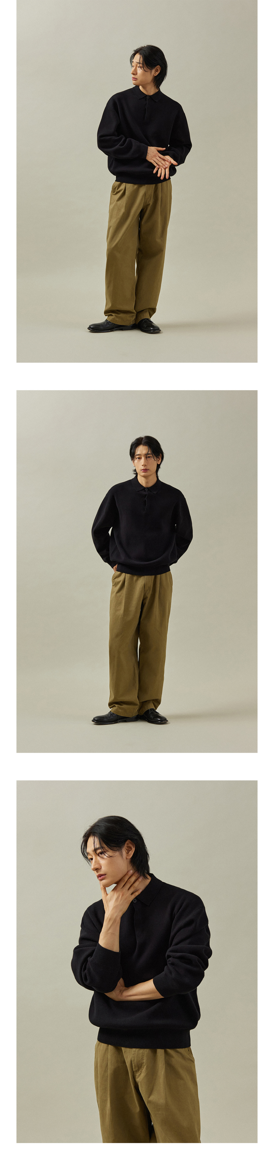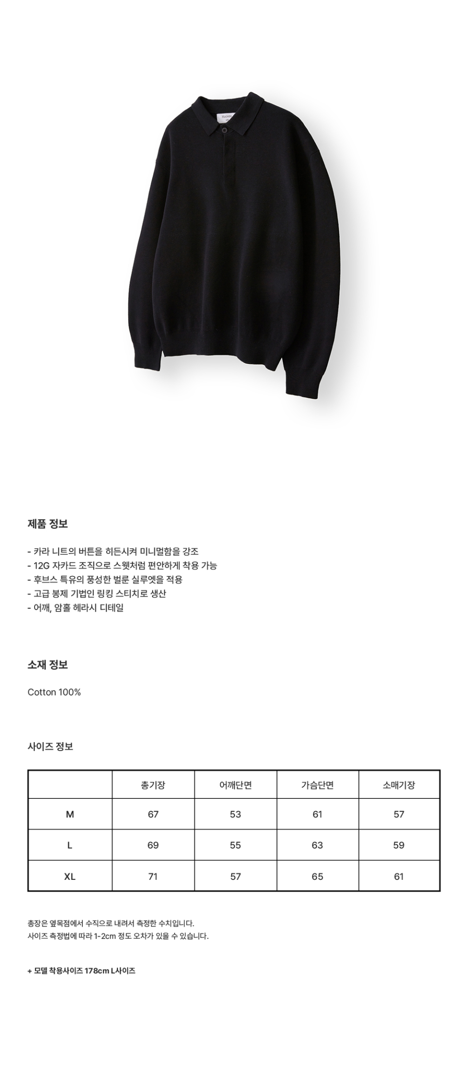하이드 버튼 카라 니트 [블랙]