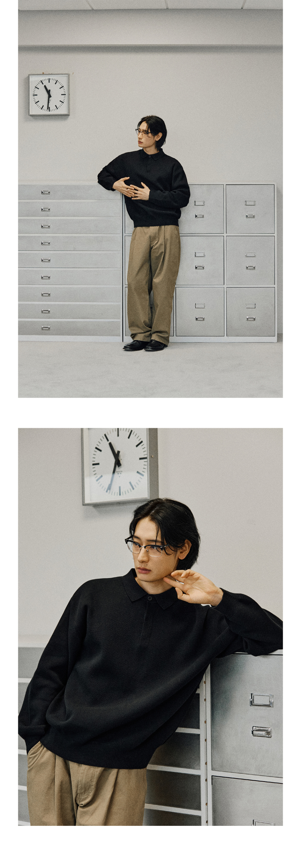 베르노 세미 오버핏 카라 니트 [블랙]