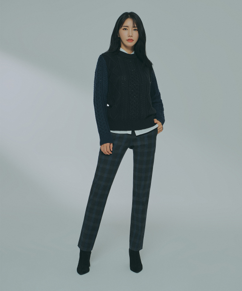 울 블랜디드 본딩팬츠_네이비글렌체크