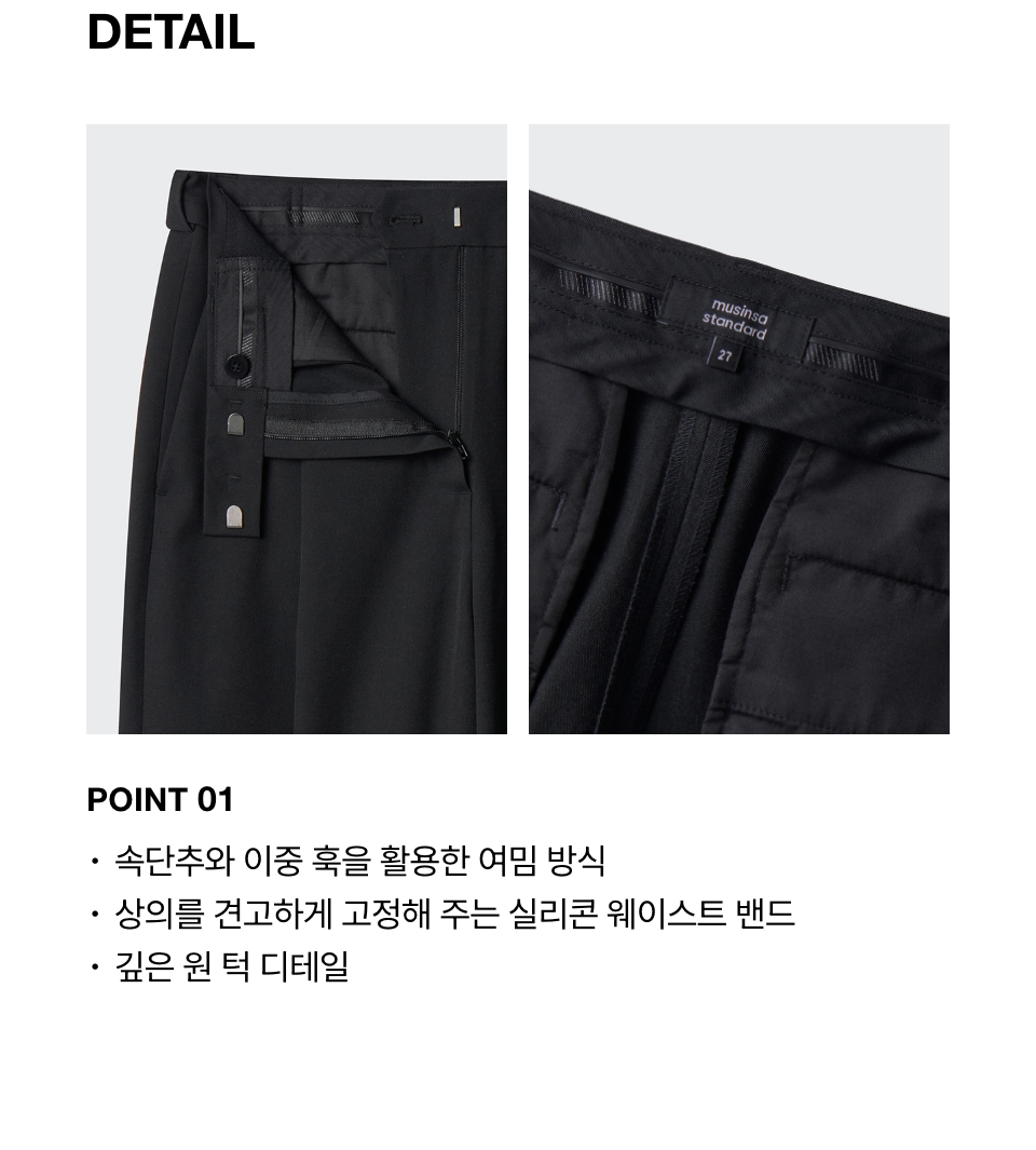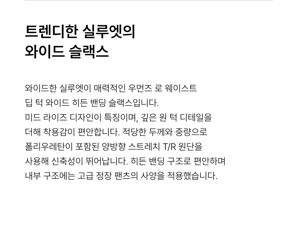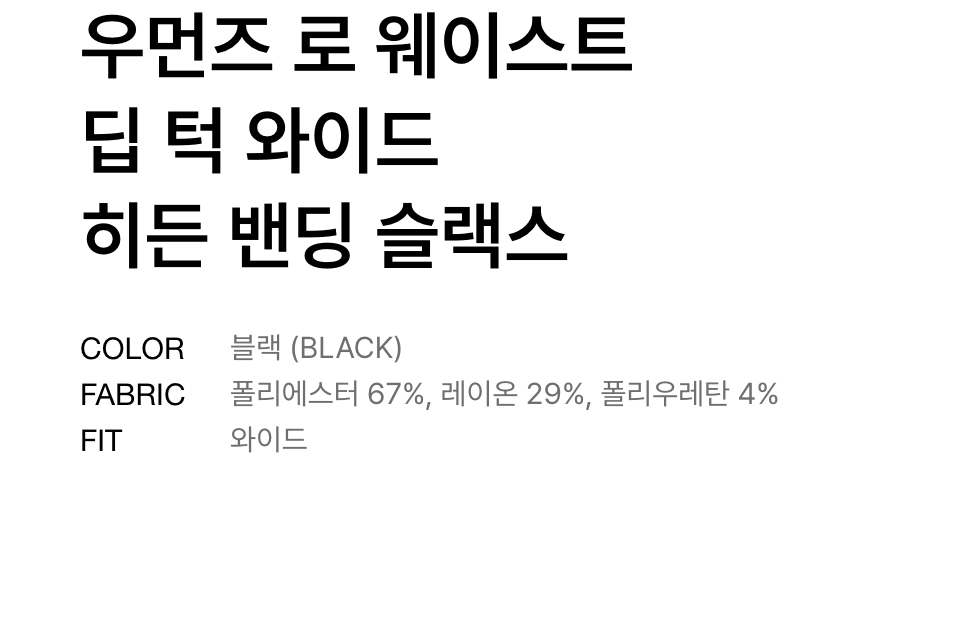 우먼즈 로 웨이스트 딥 턱 와이드 히든 밴딩 슬랙스 [블랙]