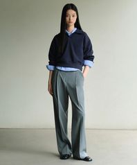 우먼즈 로 웨이스트 딥 턱 와이드 히든 밴딩 슬랙스 [멜란지 그레이]