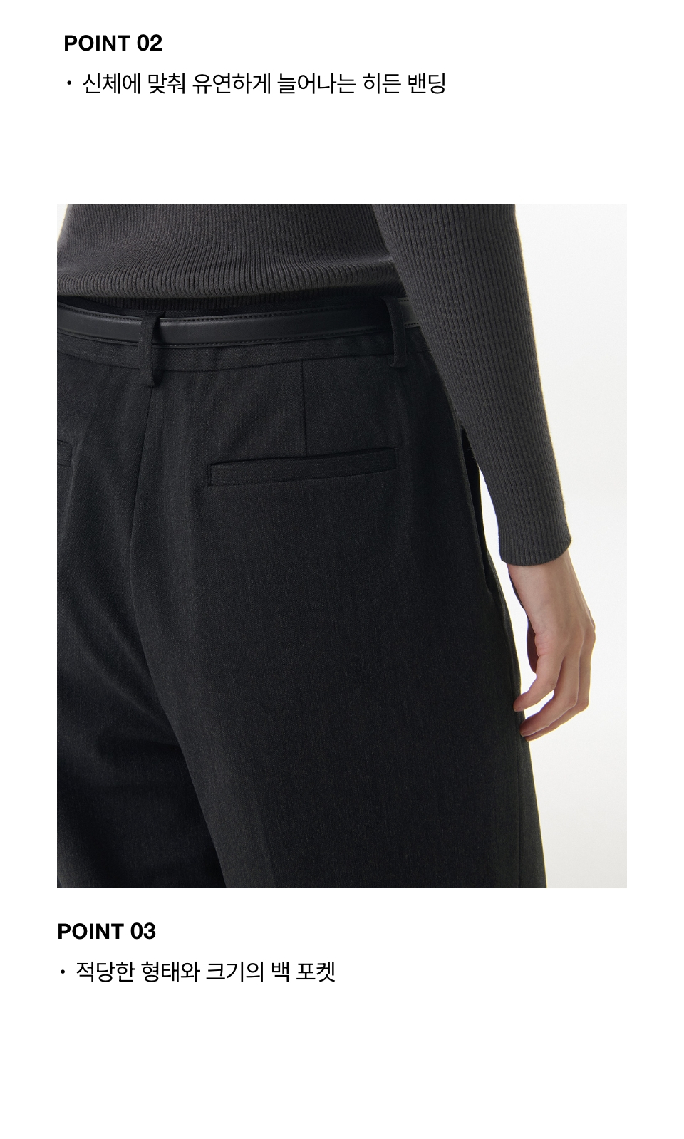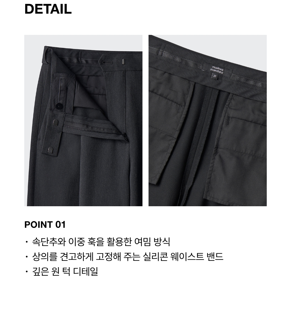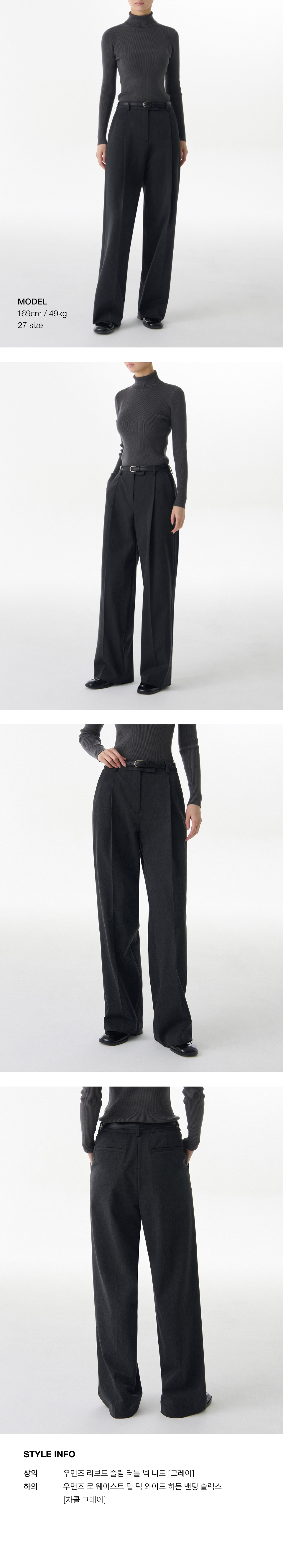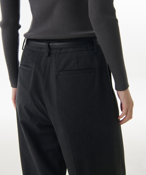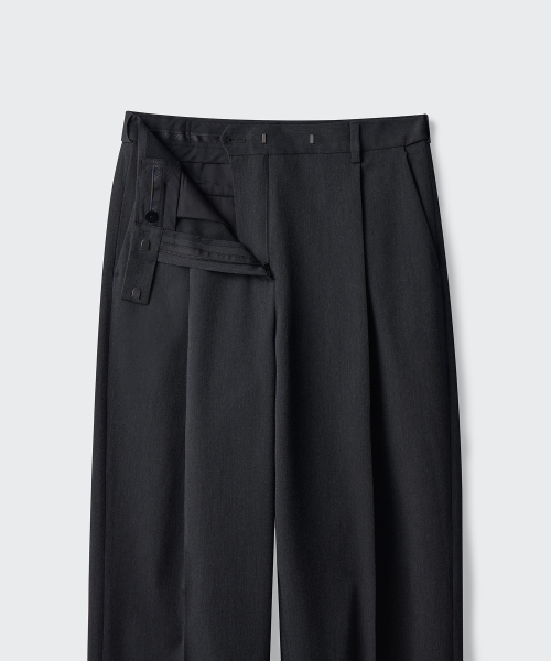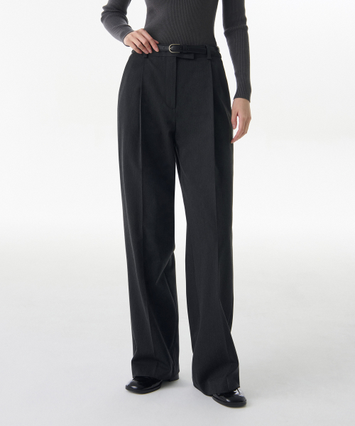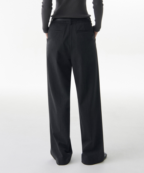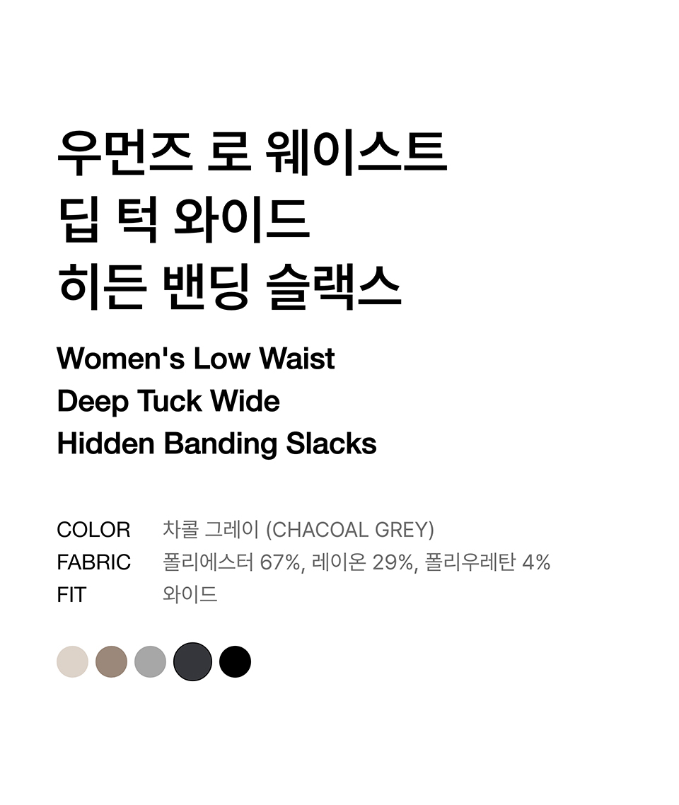 우먼즈 로 웨이스트 딥 턱 와이드 히든 밴딩 슬랙스 [차콜 그레이]