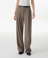 우먼즈 로 웨이스트 딥 턱 와이드 히든 밴딩 슬랙스 [더스티 베이지]