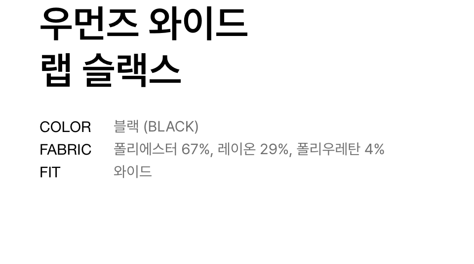 우먼즈 플루이드 와이드 슬랙스 [블랙]