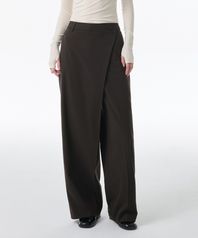 우먼즈 와이드 랩 슬랙스 [다크 브라운]