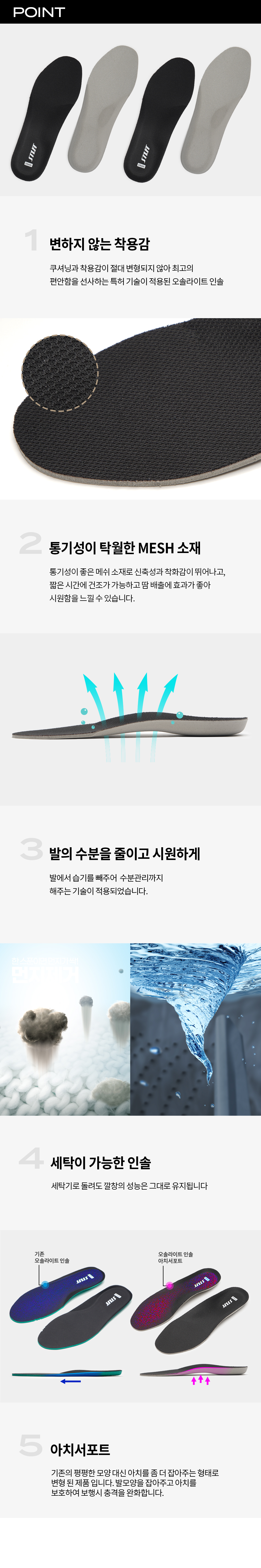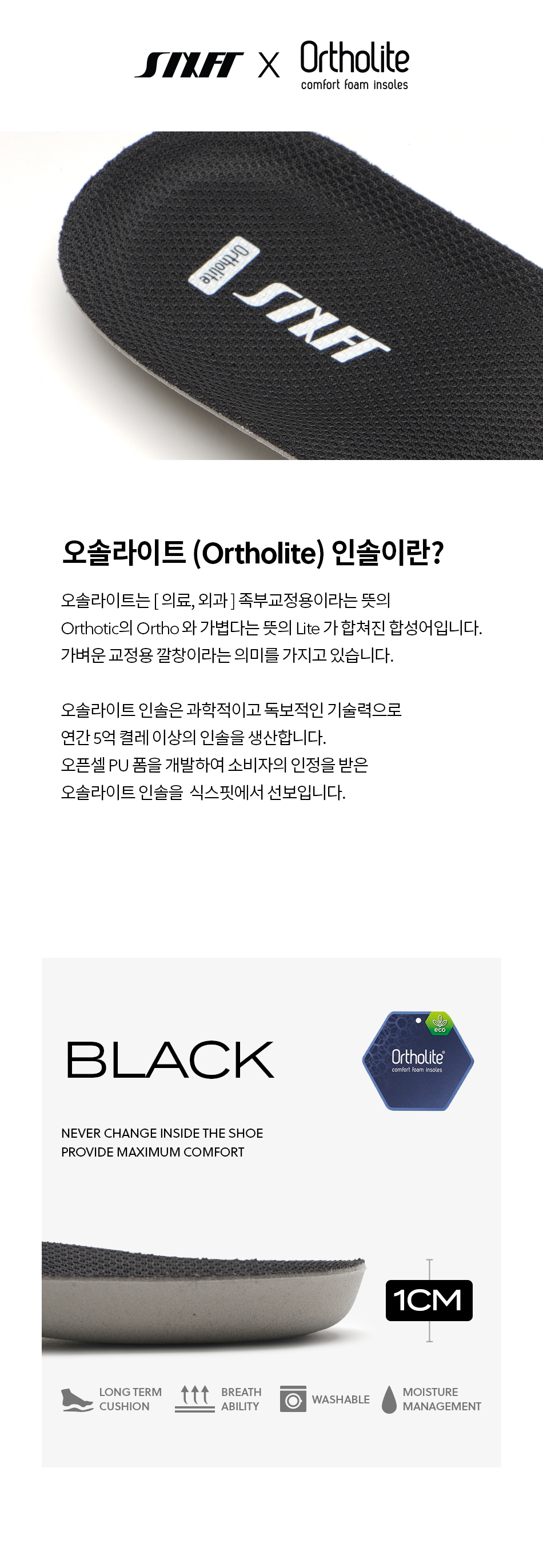 오솔라이트 1cm 인솔 (블랙 - 아치서포트형) 2개 묶음 상품