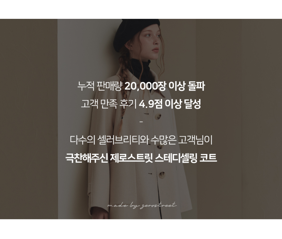제로스트릿(ZERO STREET)은 사랑스러운 컬러에 아름답고 우아한 디자인 감성을 더해 매 시즌 새로운 컬렉션과 스토리를 선보이는 브랜드입니다.
