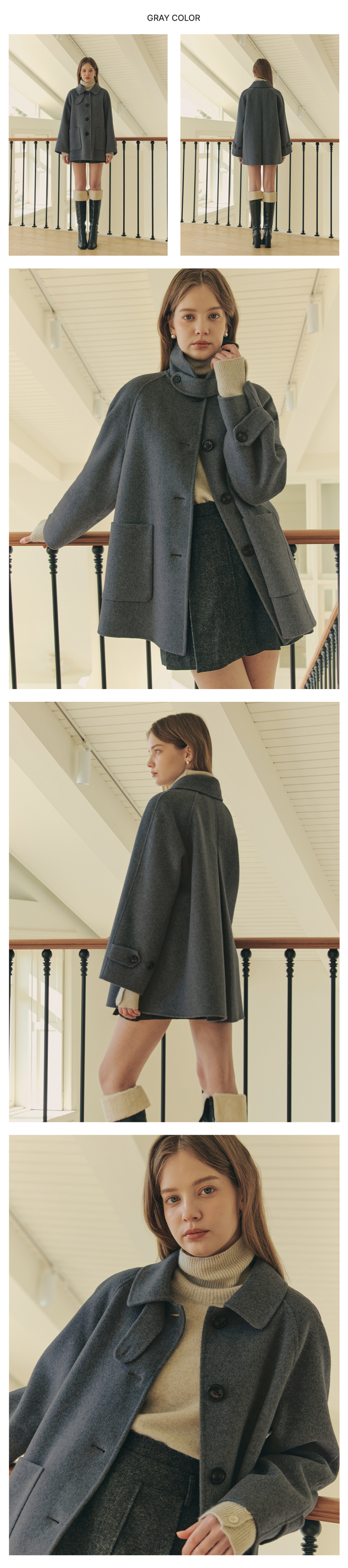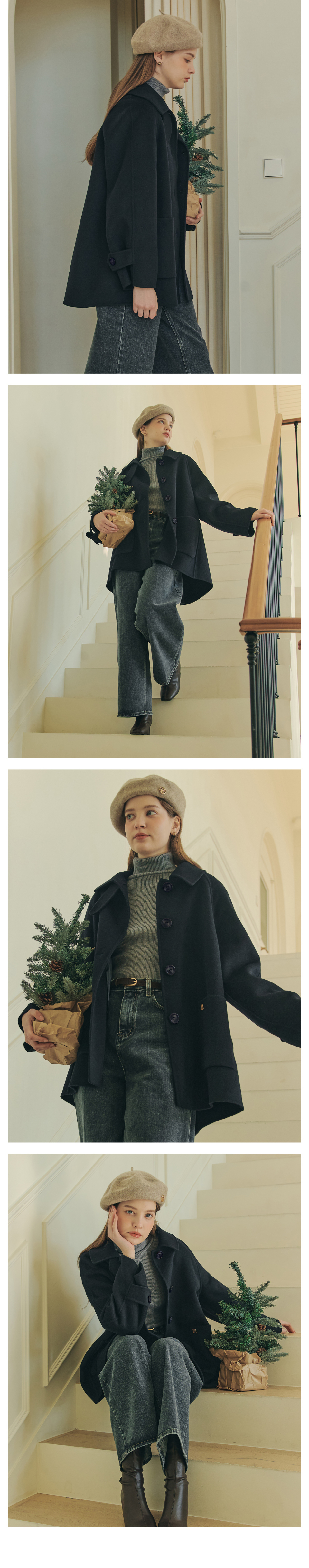 [6컬러] 핸드메이드 에이라인 울 하프 코트