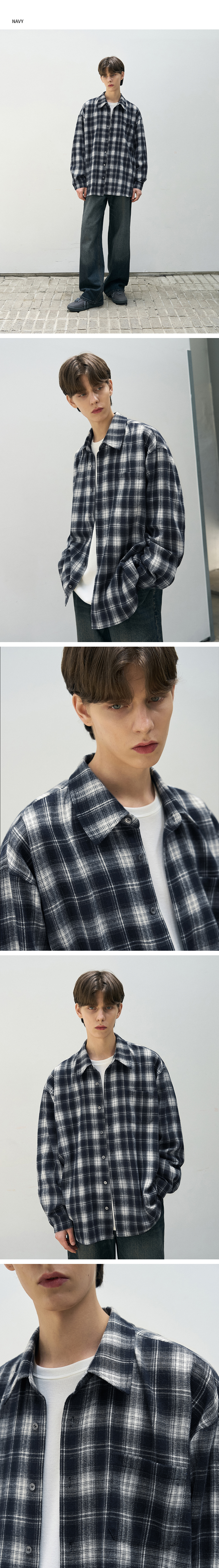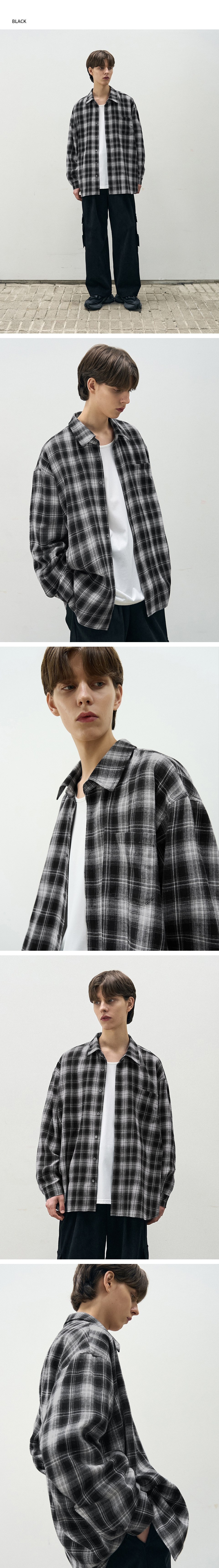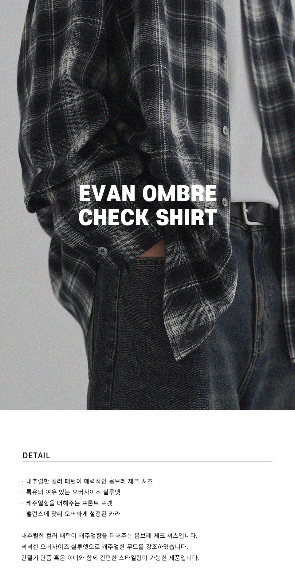 에반 옴브레 체크 셔츠 [BLACK]