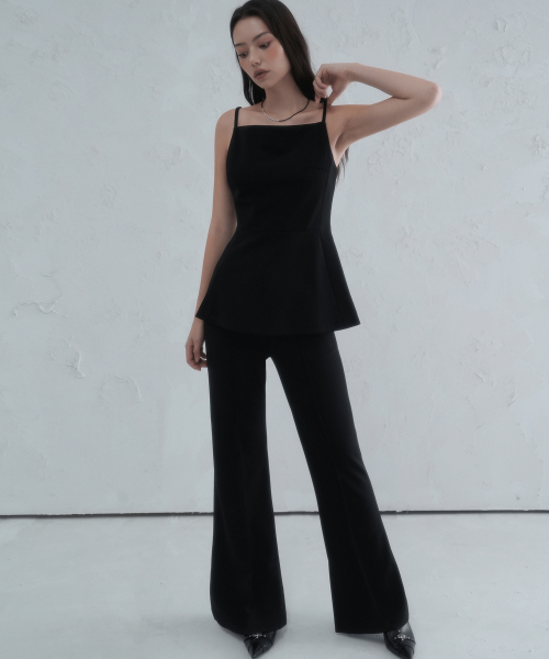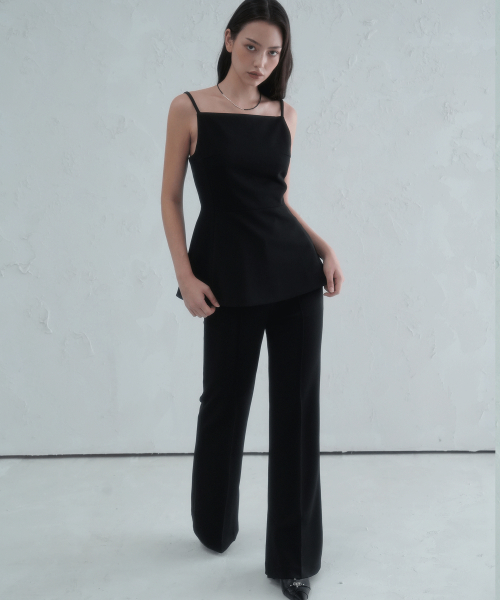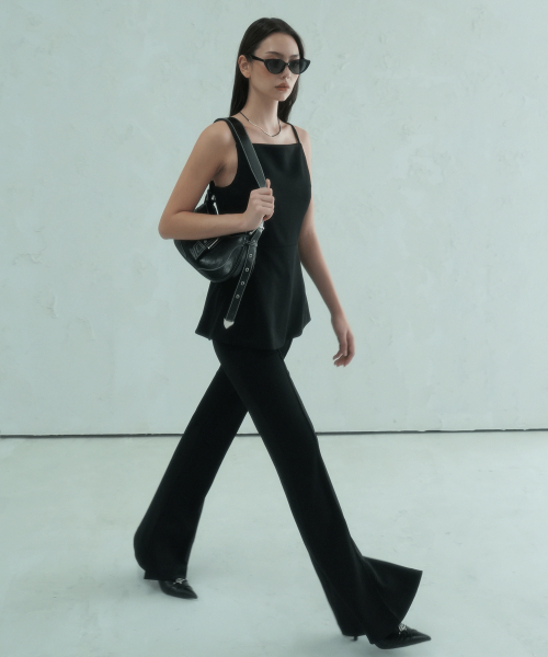우먼즈 세미 부츠 컷 히든 밴딩 슬랙스 [블랙]