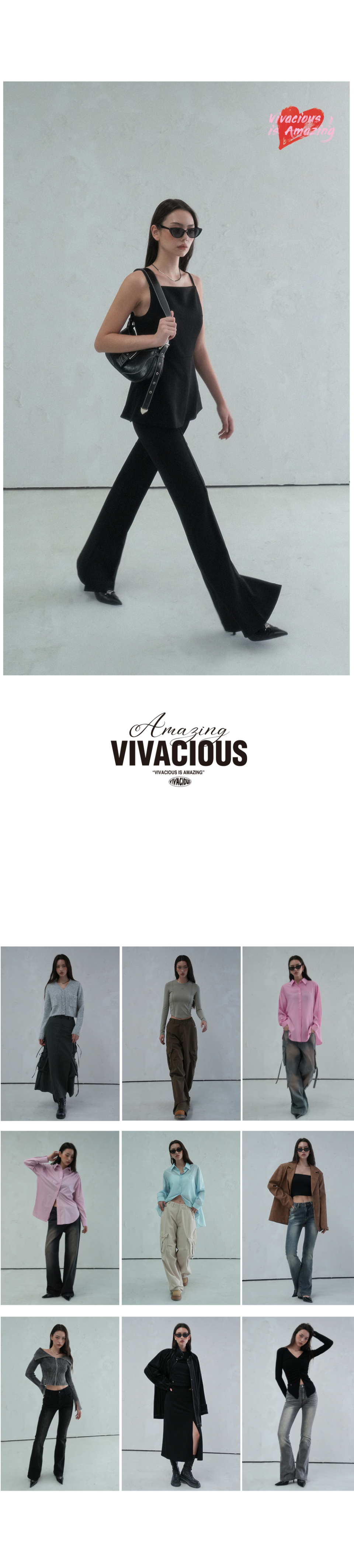 비바셔스(VIVACIOUS)는 독보적인 비주얼과 설렘으로 매일을 장식하며, 사랑받고 사랑하며 사랑을 나누는 여성들을 위한 브랜드입니다. 데일리 룩에 영감을 줄 비바셔스를 참고해 보세요.