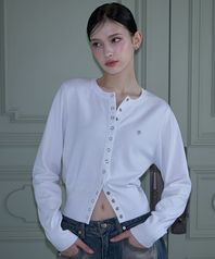 Eyelet Round Cardigan [White]