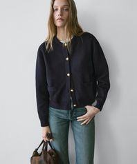골드 버튼 코튼 니트 가디건