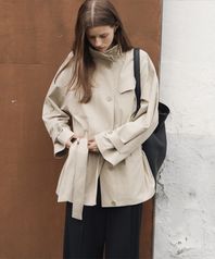 Nocturne High-Neck Cotton Half Trench Jacket