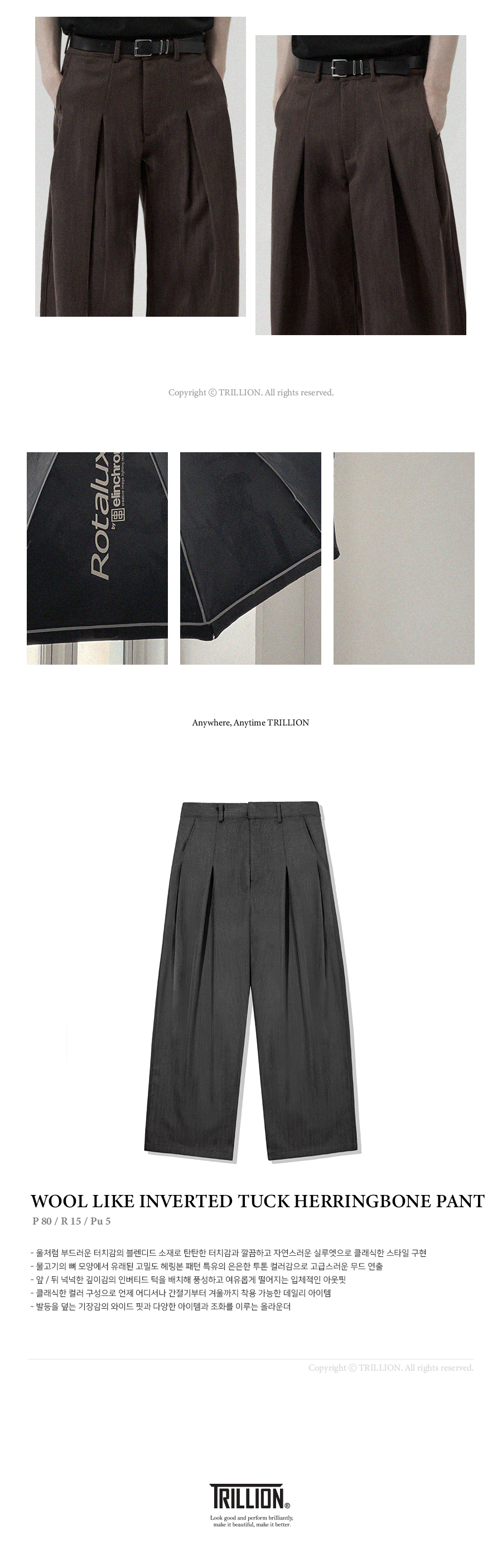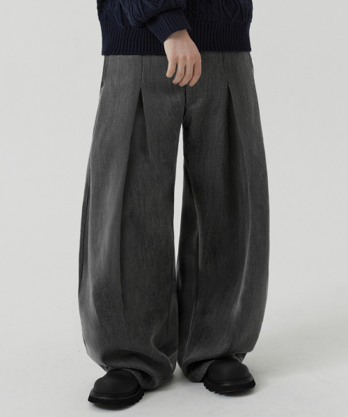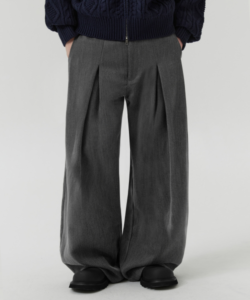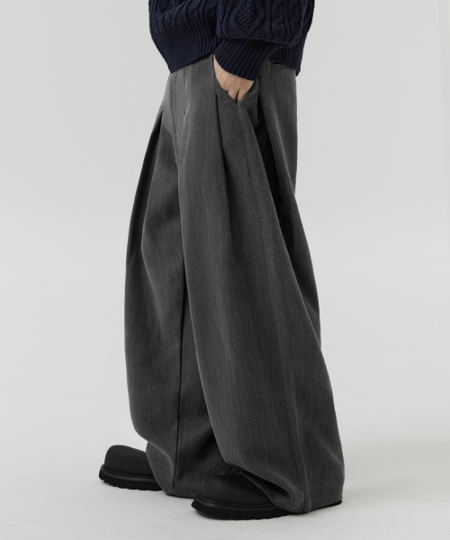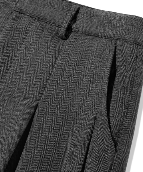 울 라이크 인버티드 턱 헤링본 와이드 팬츠 (GRAY)