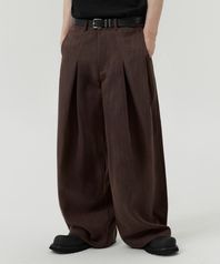 울 라이크 인버티드 턱 헤링본 와이드 팬츠 (BROWN)