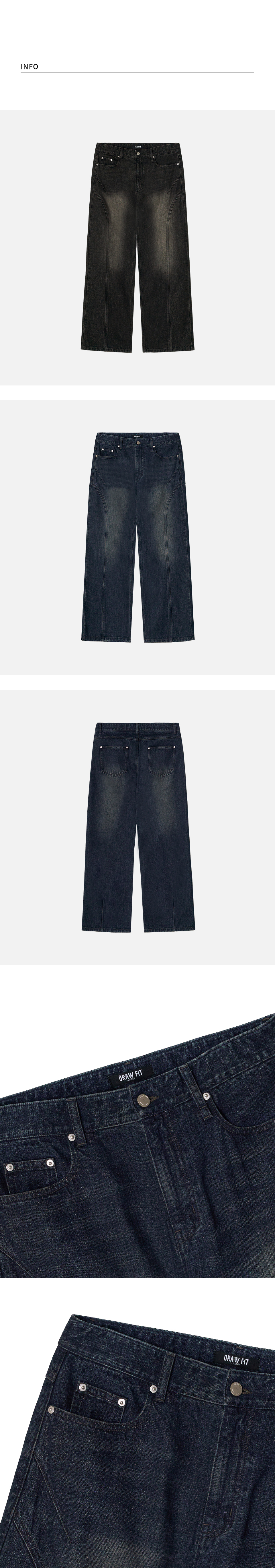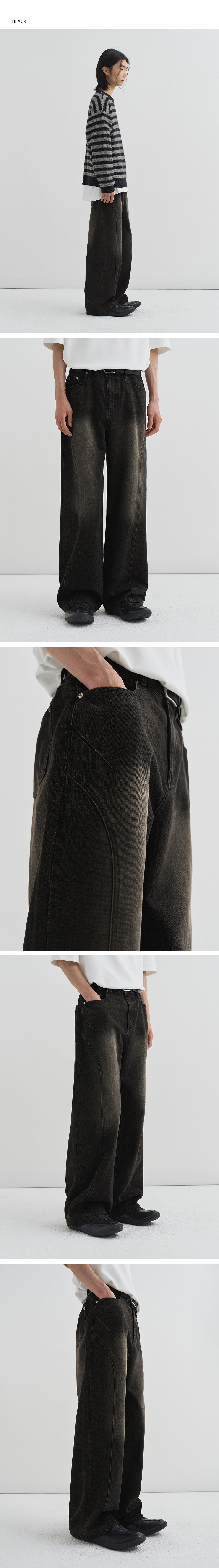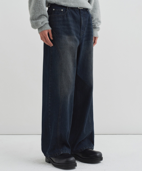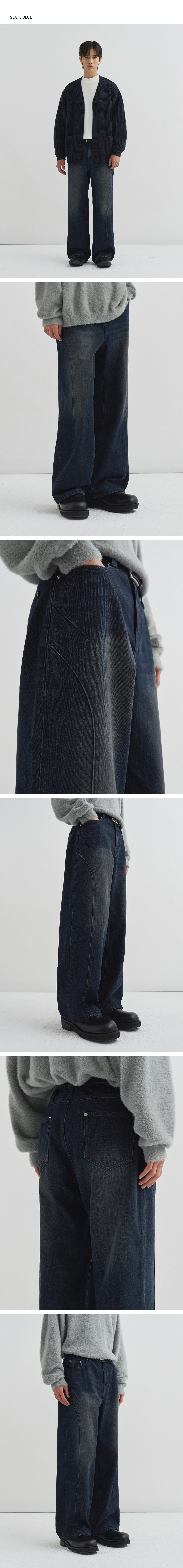 커브드 인시전 라인 데님 팬츠 [SLATE BLUE]