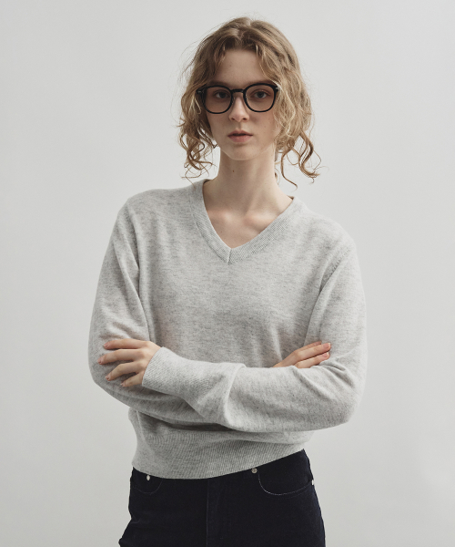 울 캐시미어 브이넥 니트 라이트그레이 MDKT088LGRAY