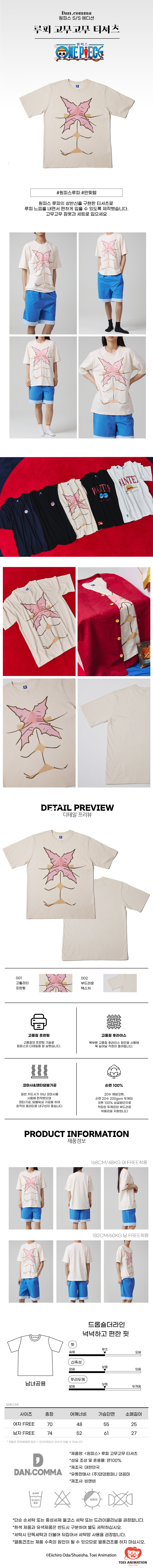 원피스 루피 고무고무 반팔 티셔츠