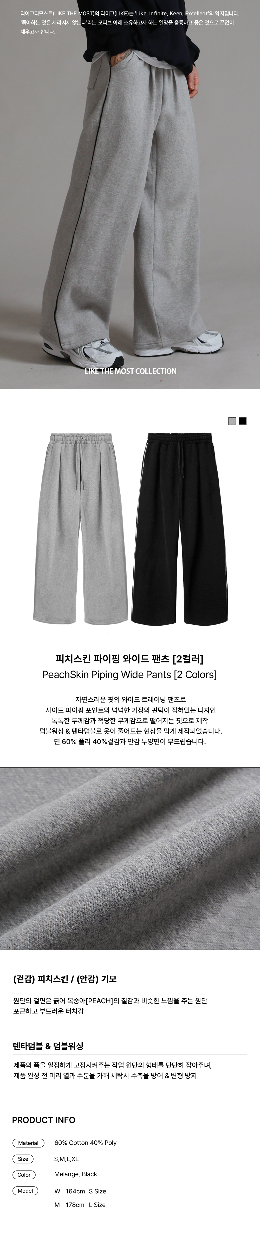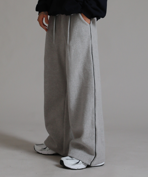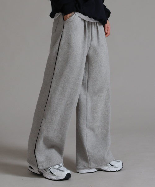 피치스킨 파이핑 와이드 팬츠_멜란지