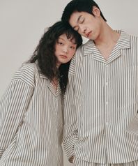 (uni)도미토리 빈 스트라이프 파자마 브라운아이보리