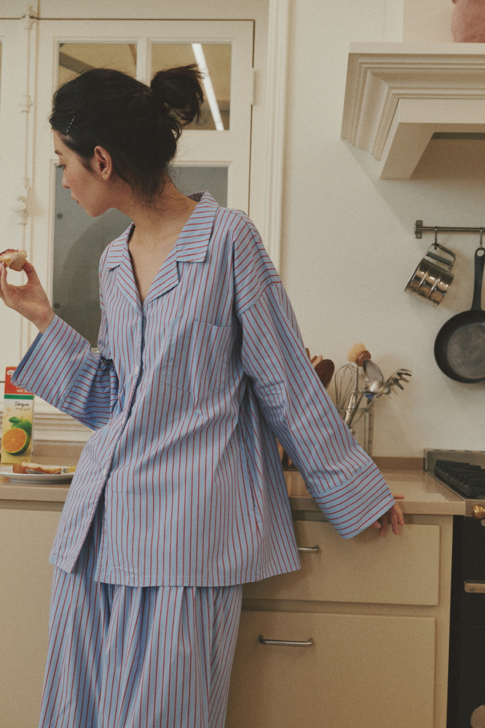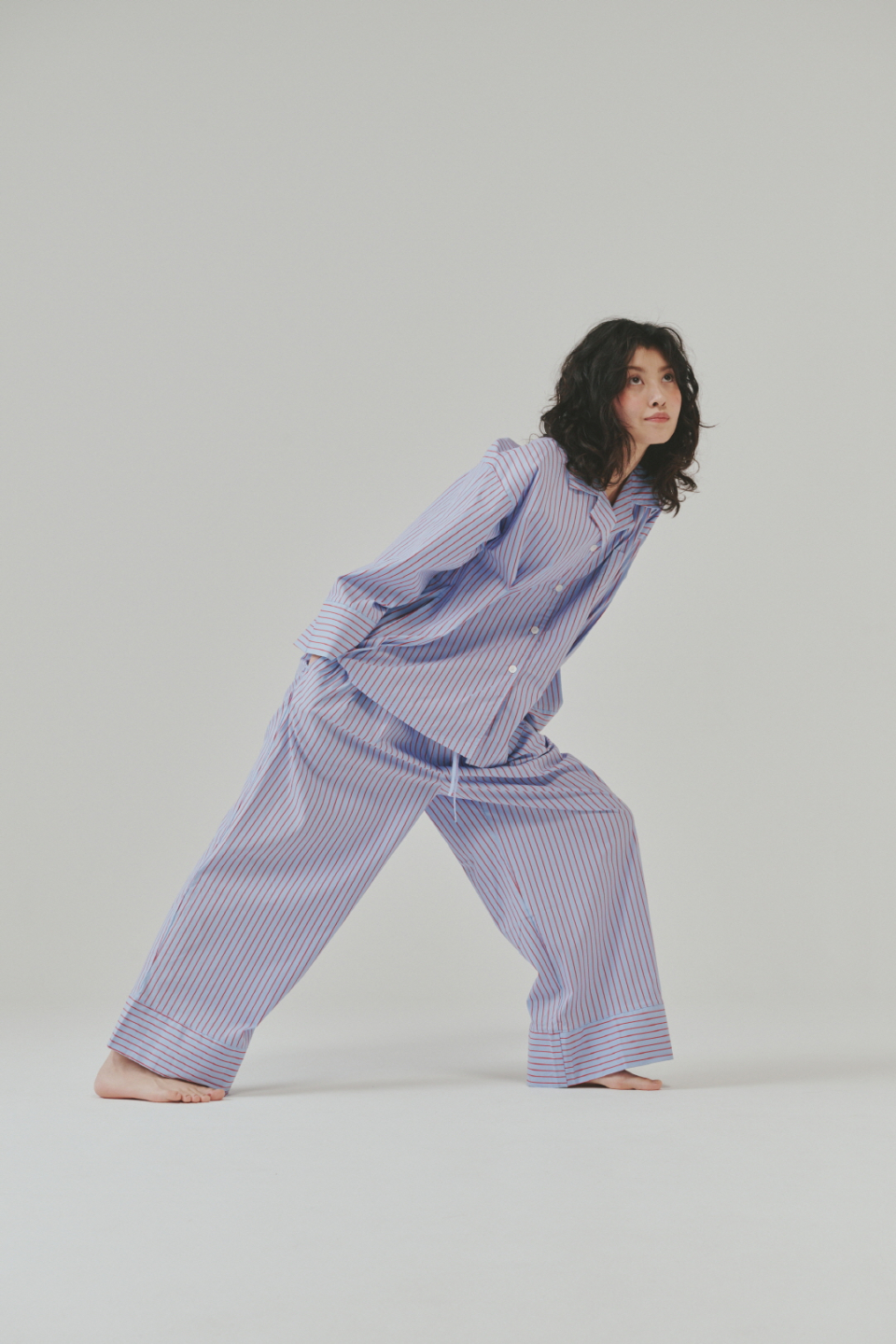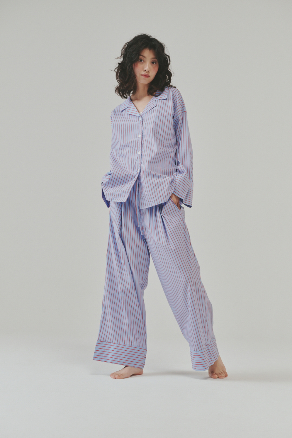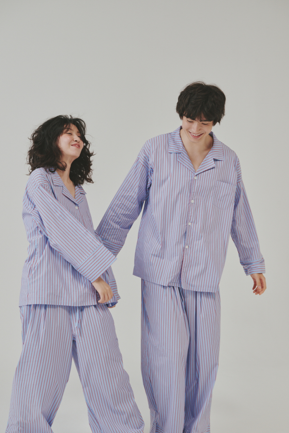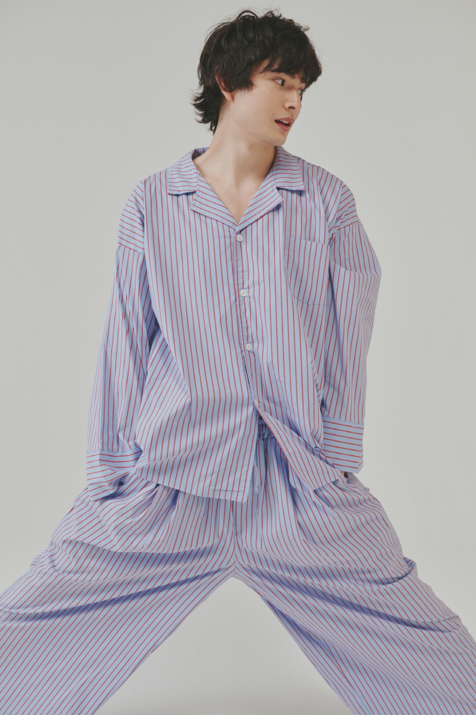 (uni)도미토리 빈 스트라이프 파자마 레드블루