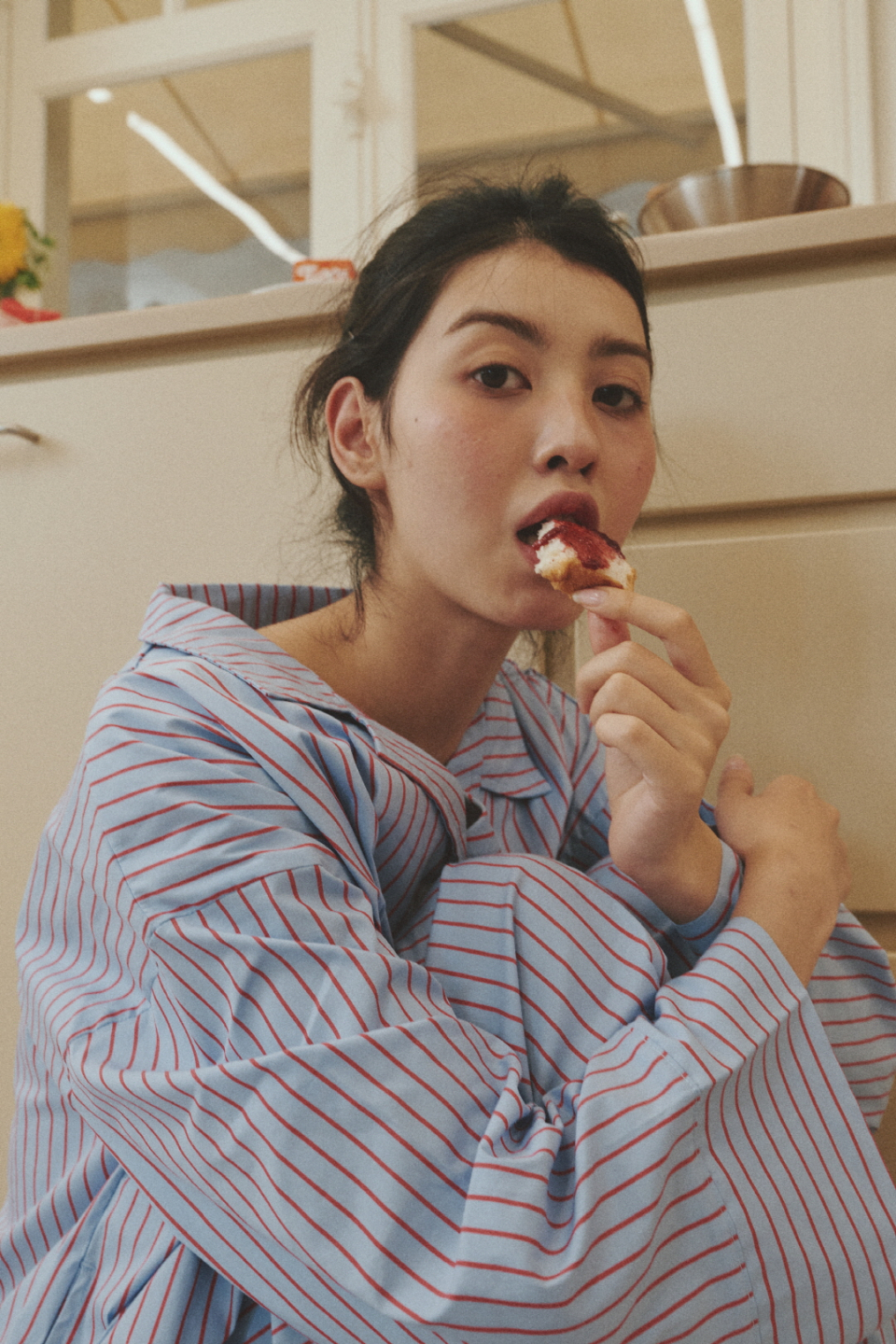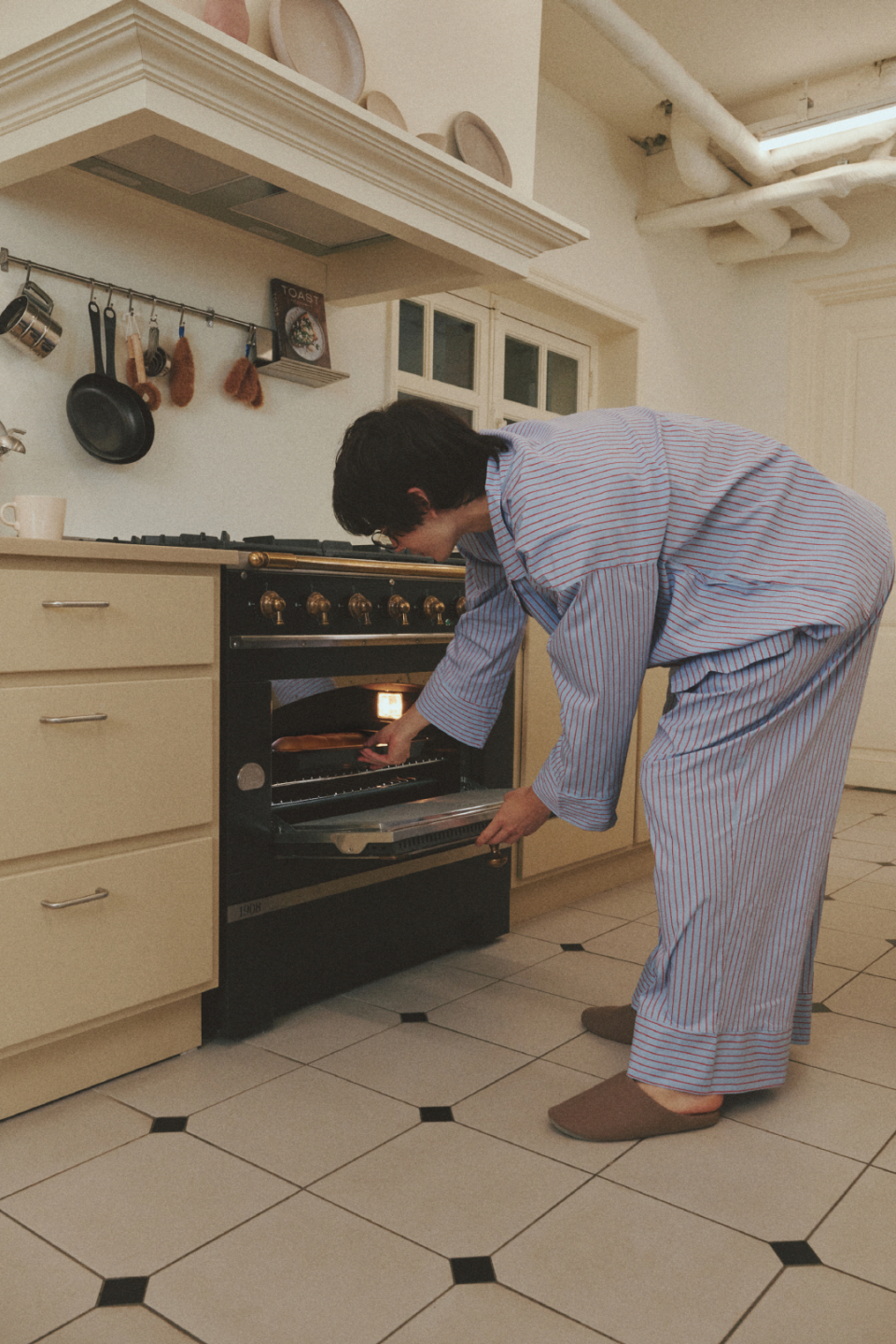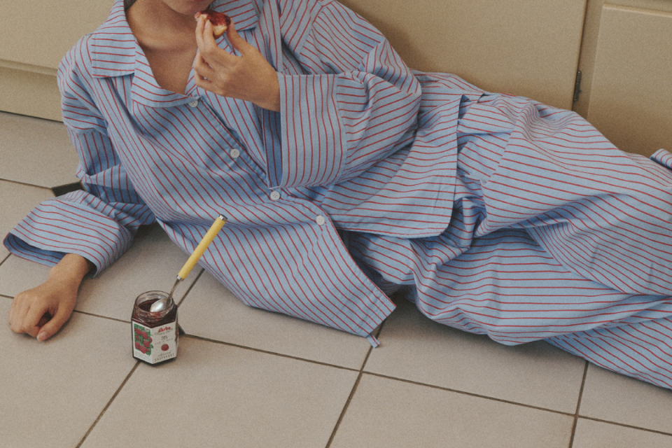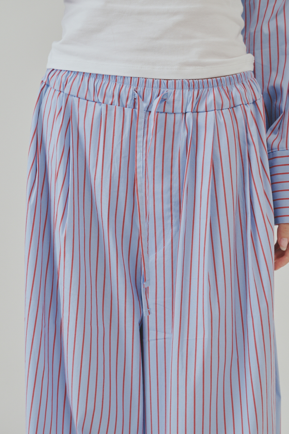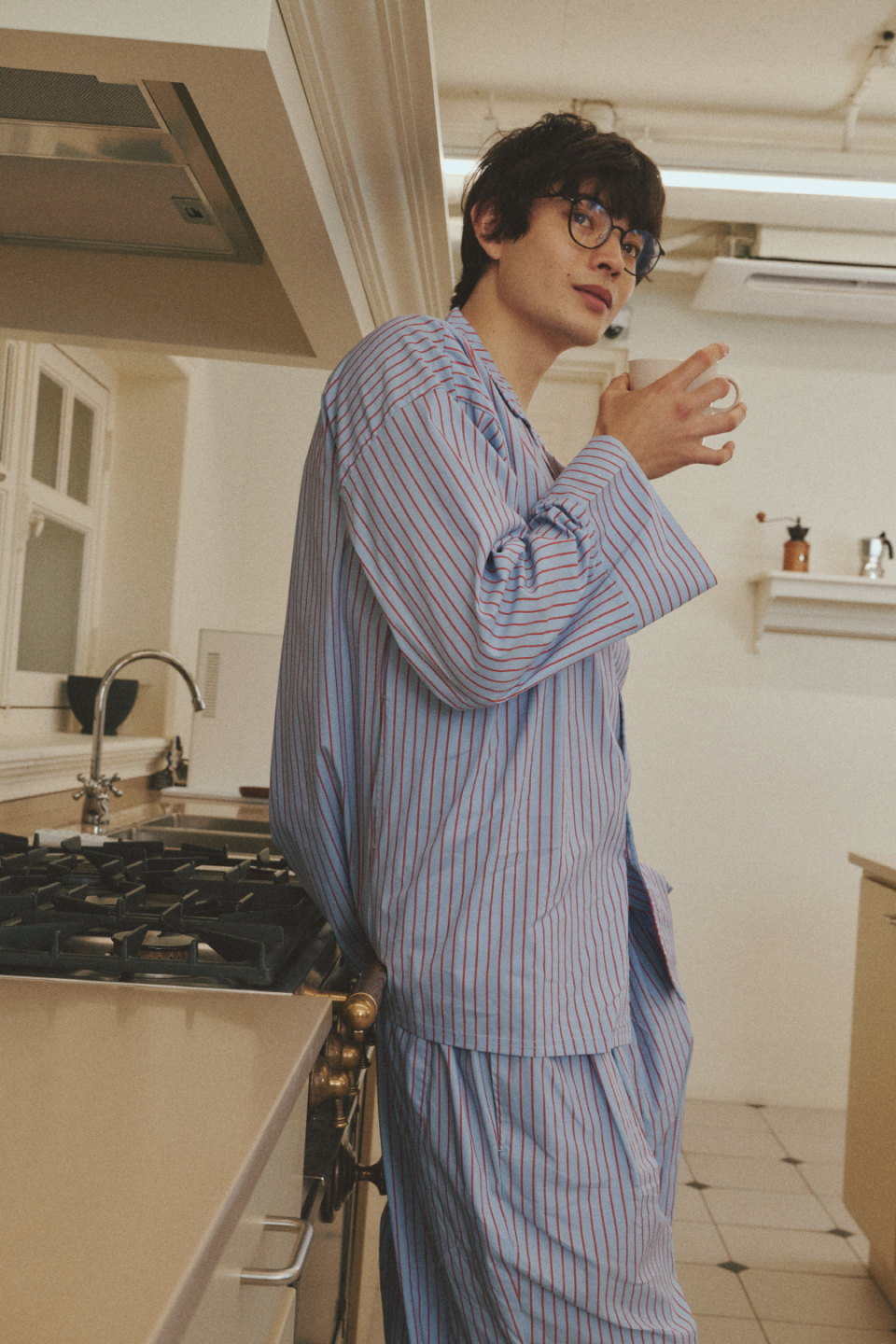 (uni)도미토리 빈 스트라이프 파자마 레드블루