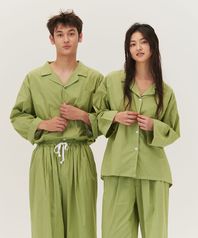 [2PACK] (uni)도미토리 티킹 스트라이프 파자마 올리브