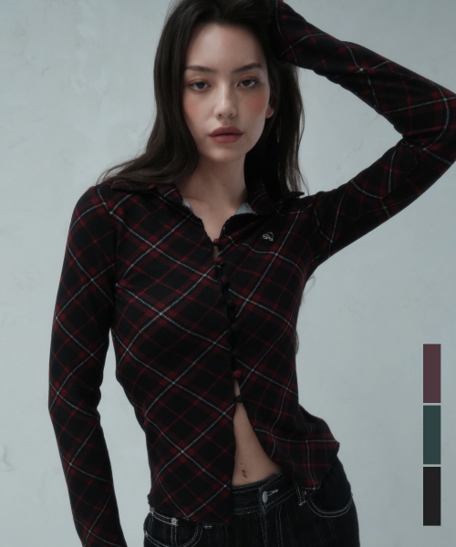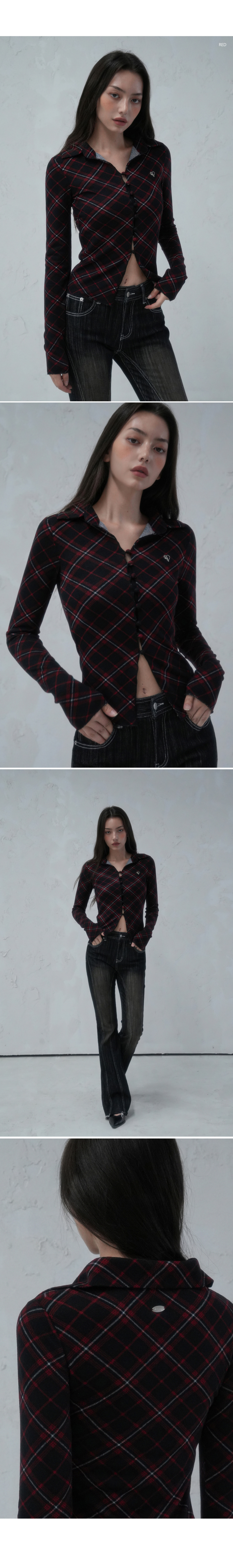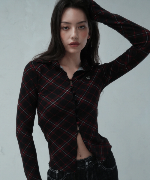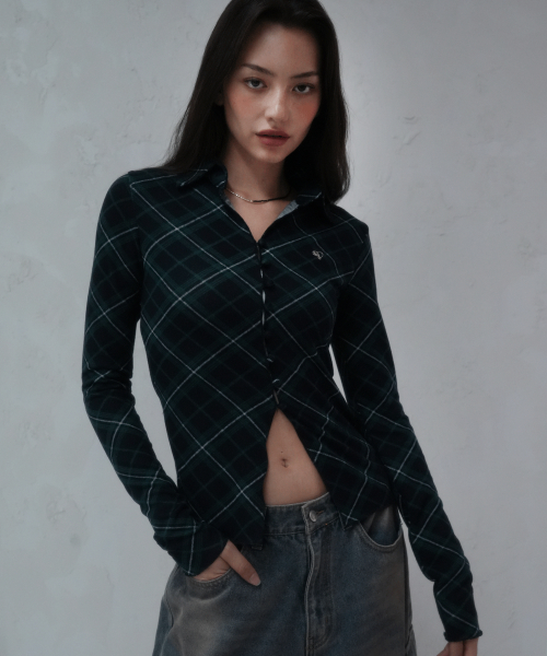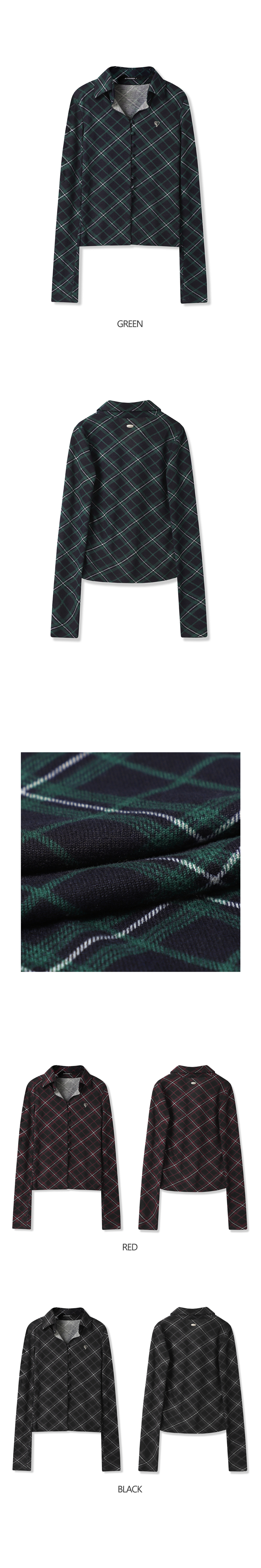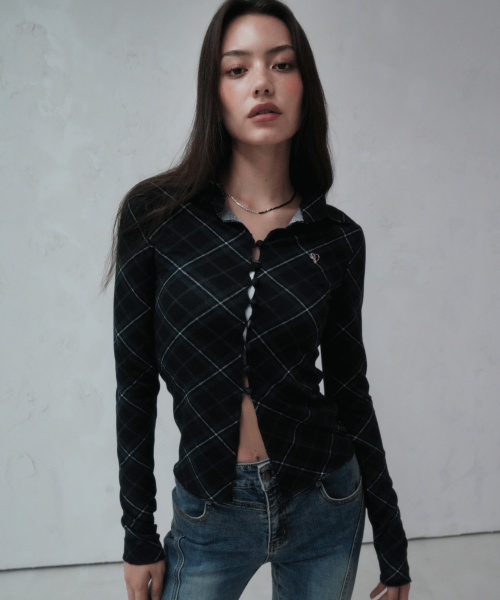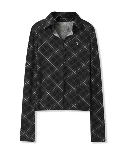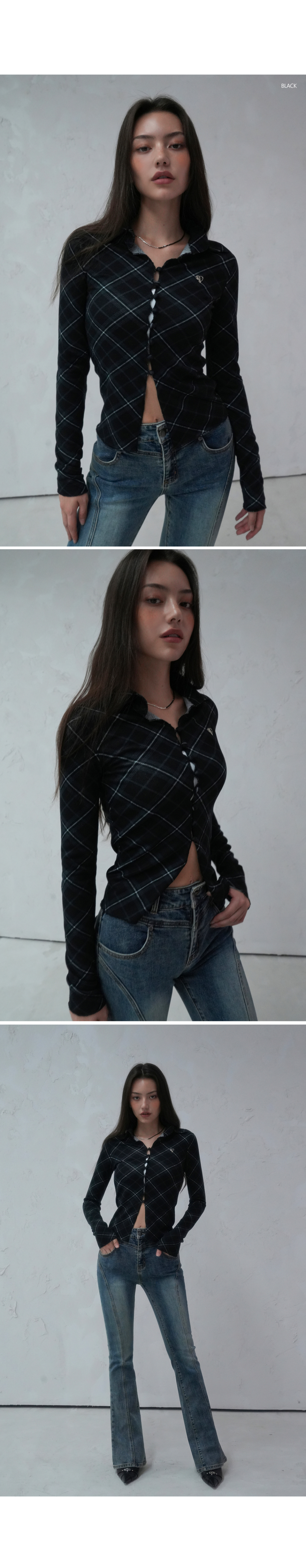 체크 포인트 슬림 카라 롱슬리브 블랙