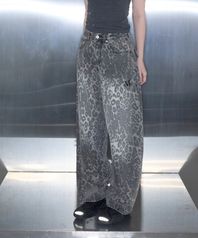 디트 스냅 버튼 레오파드 호피 와이드 팬츠