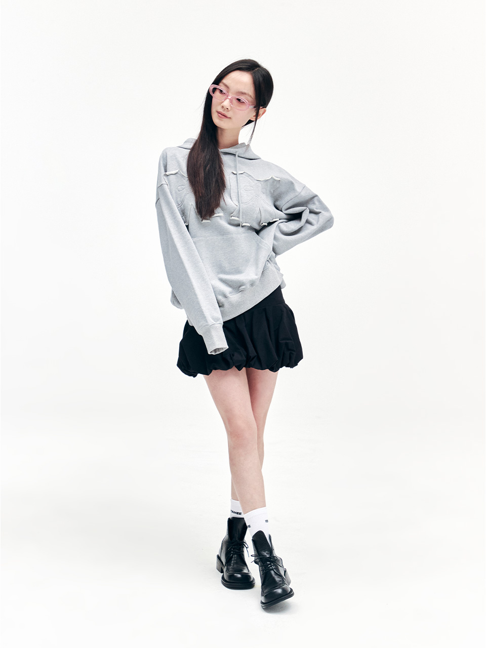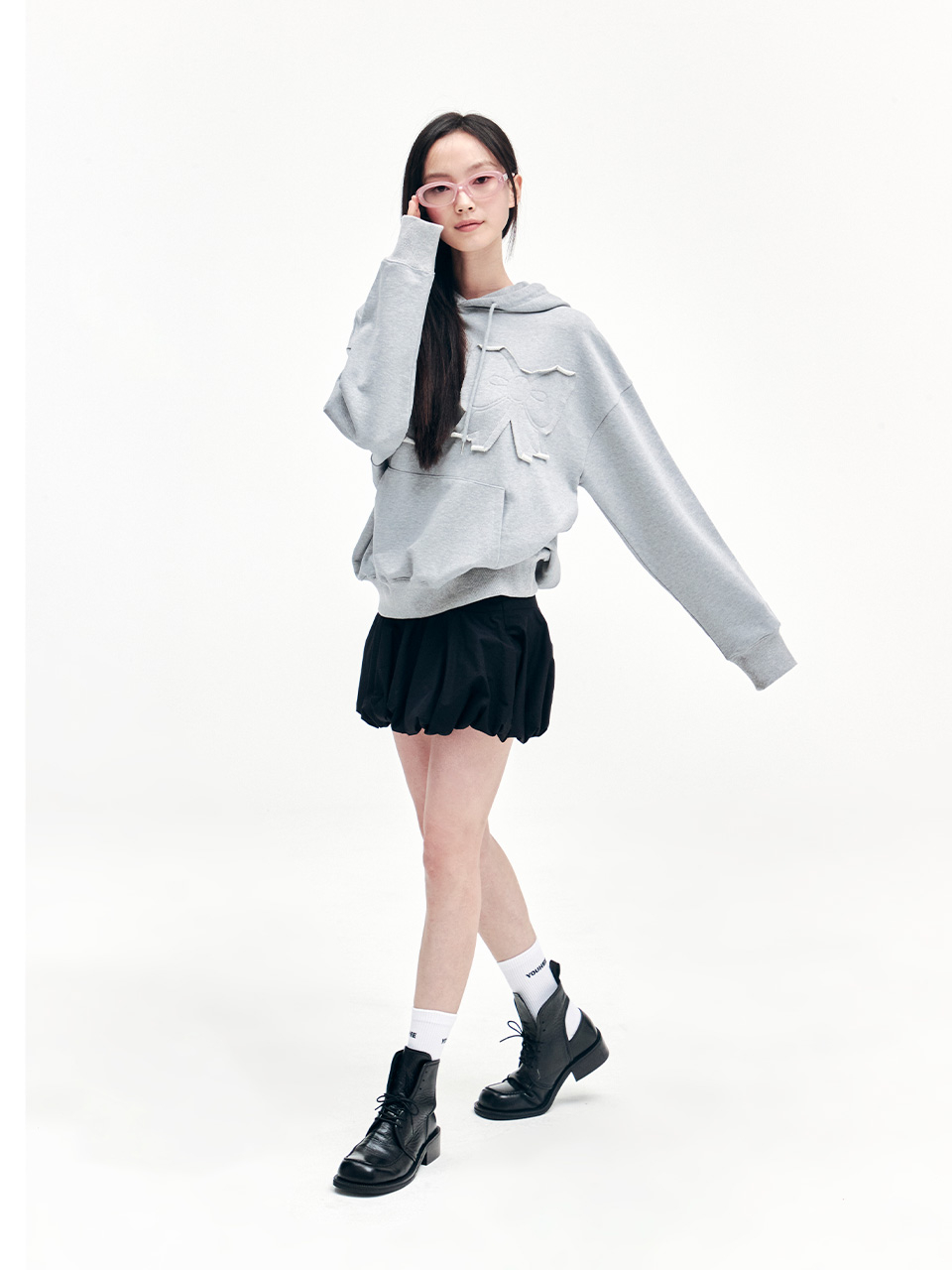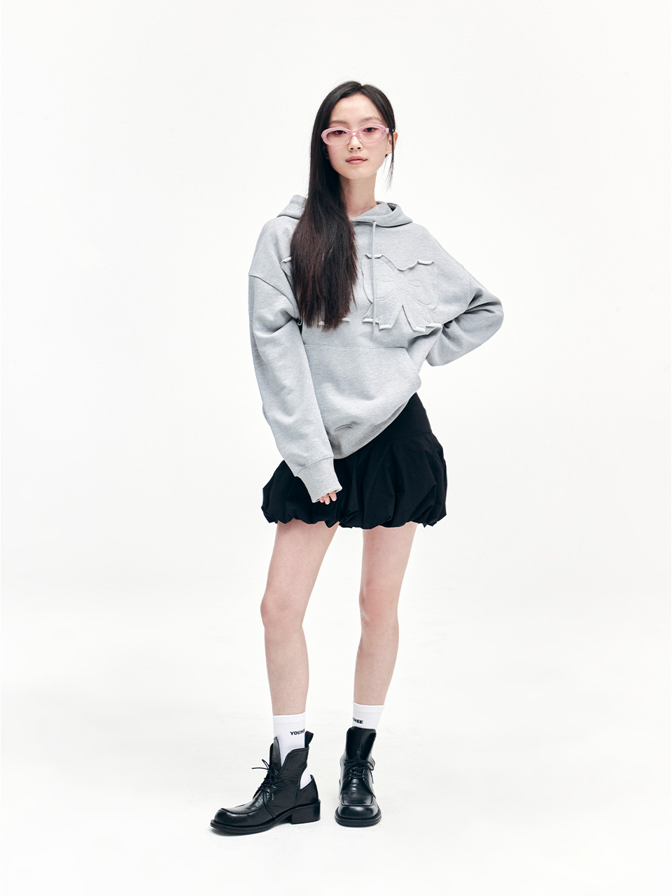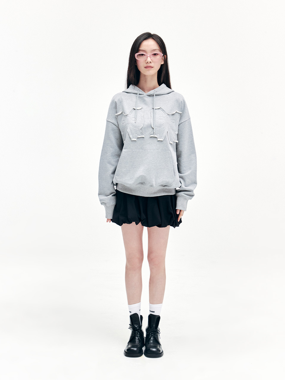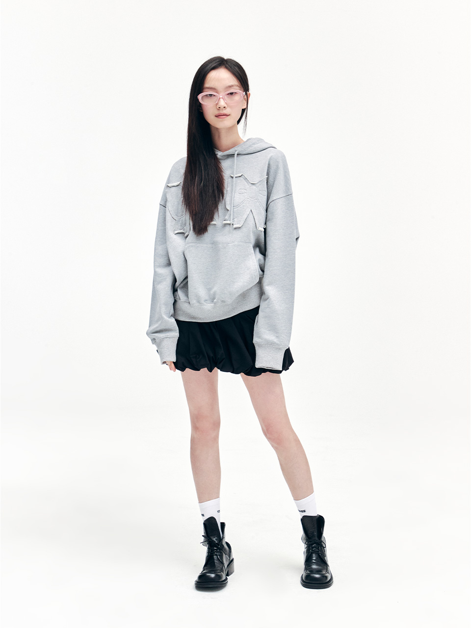YOUHEE RIBBON HOODIE MELANGE GREY