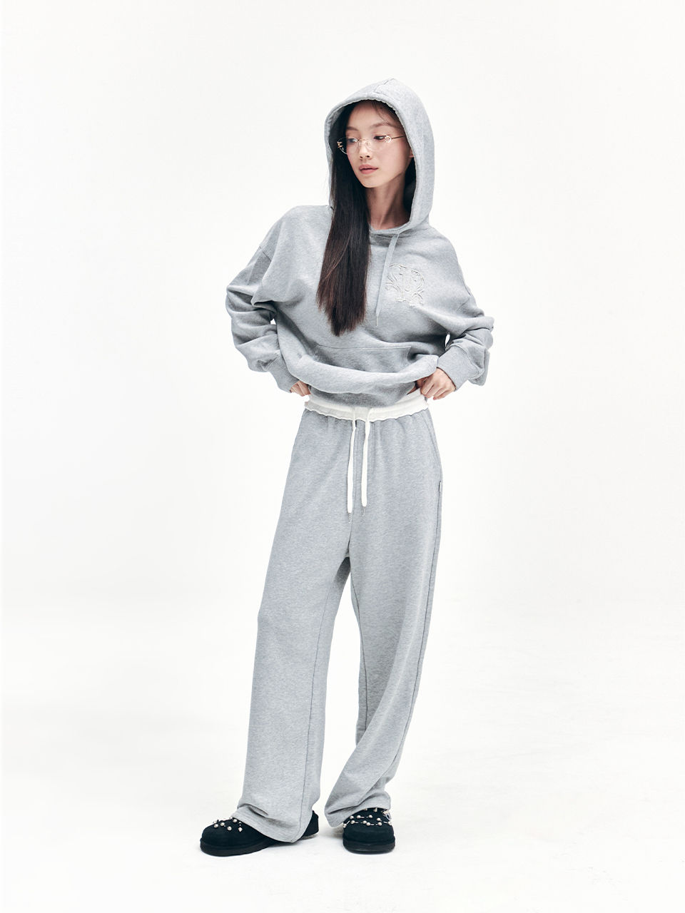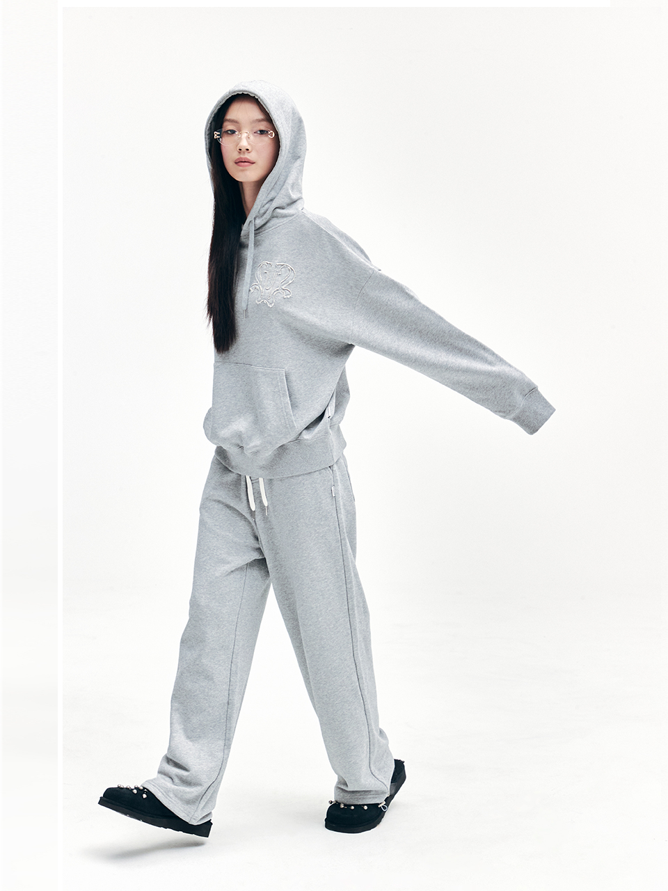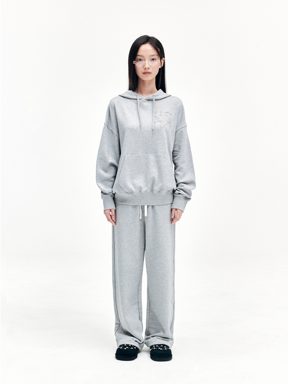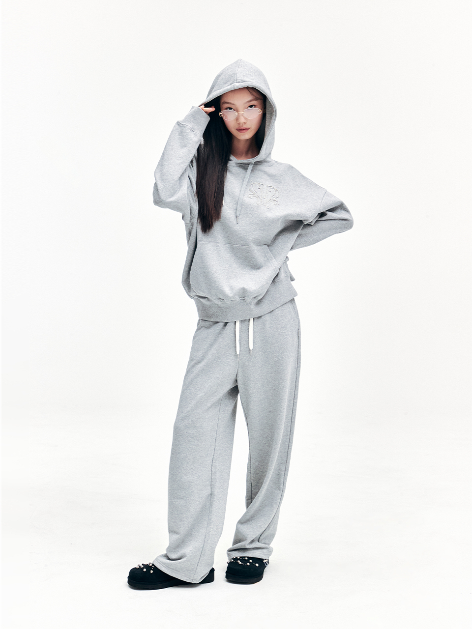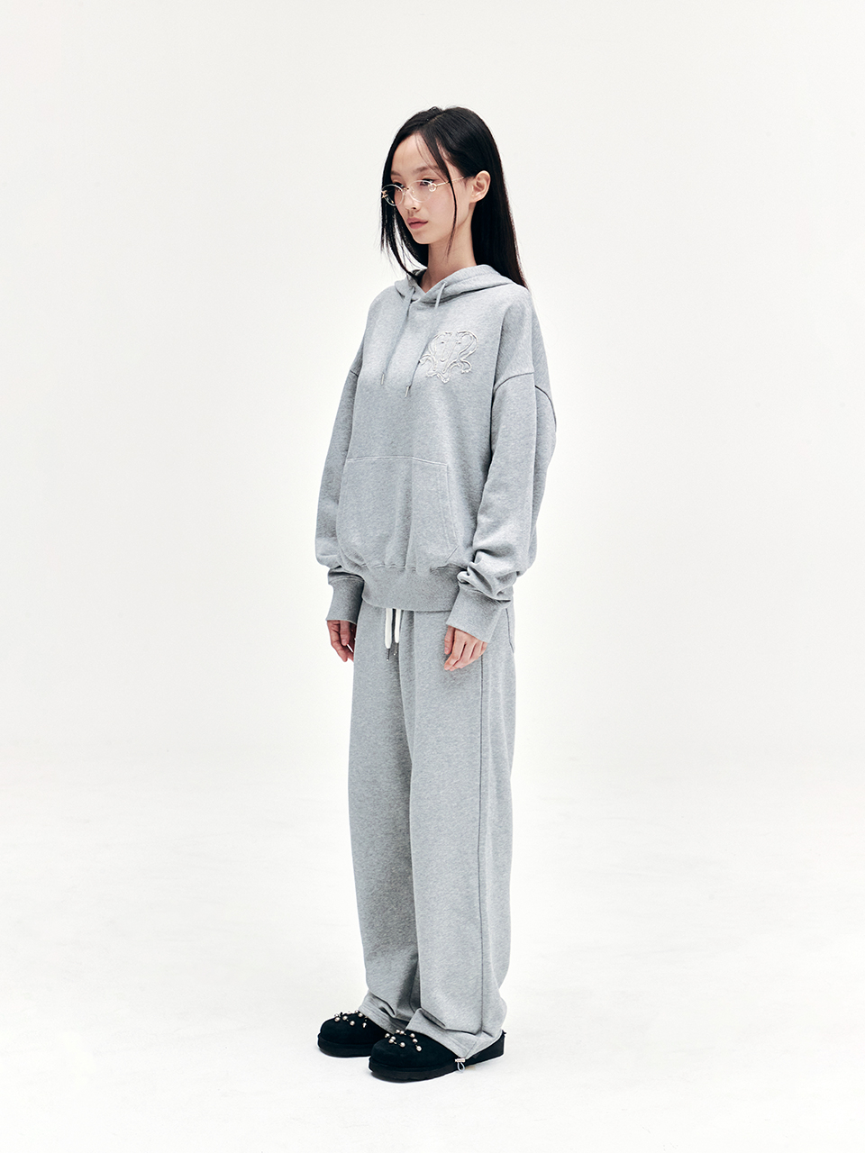 YOUHEE SYMBOL GRAPHIC HOODIE MELANGE GREY