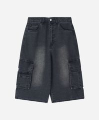 워시드 카고 버뮤다 데님 팬츠 블랙 BPBDP245U