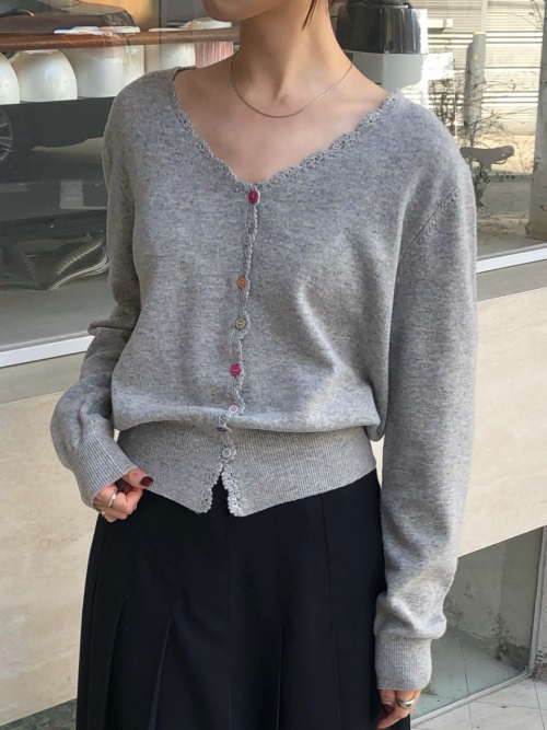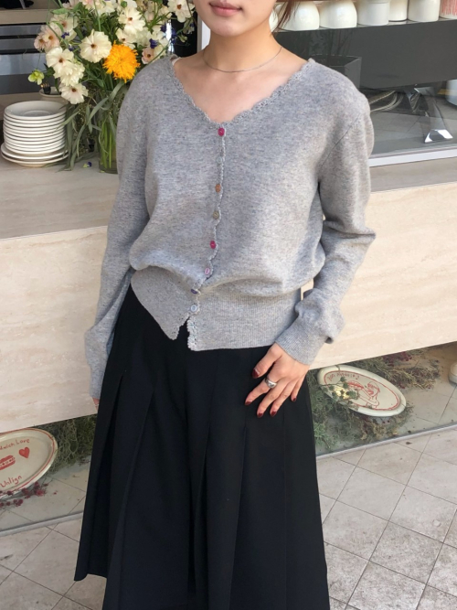 SALENA wool v neck cardigan_GRAY