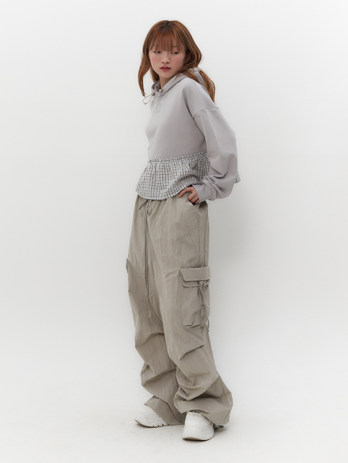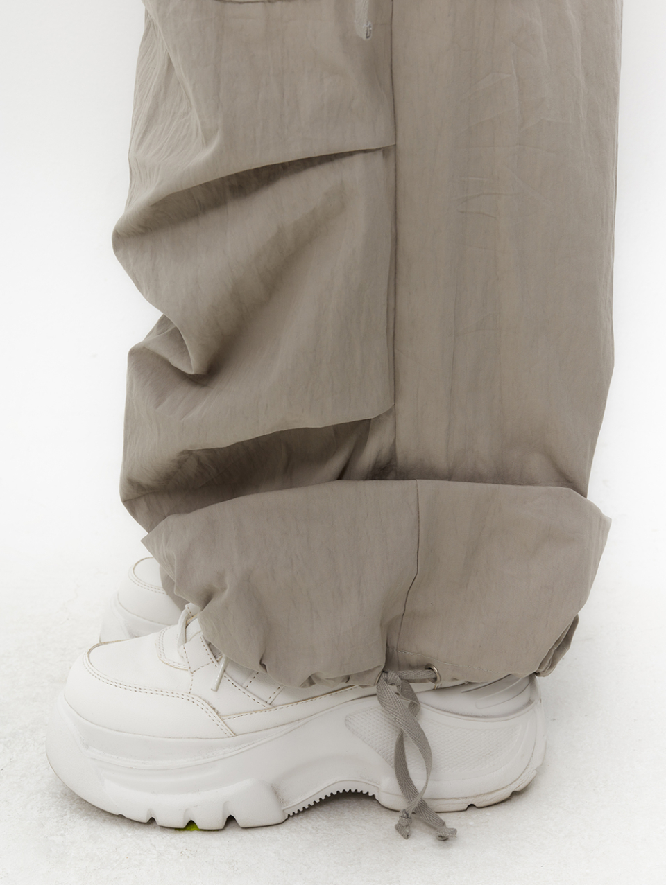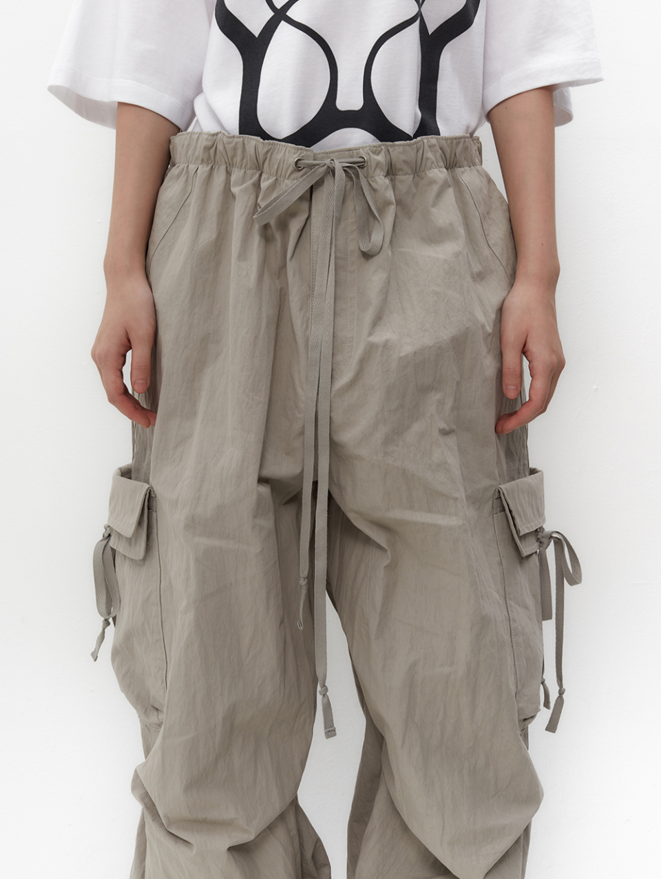 스트랩을 활용하여 허리와 밑단 핏 조절 가능