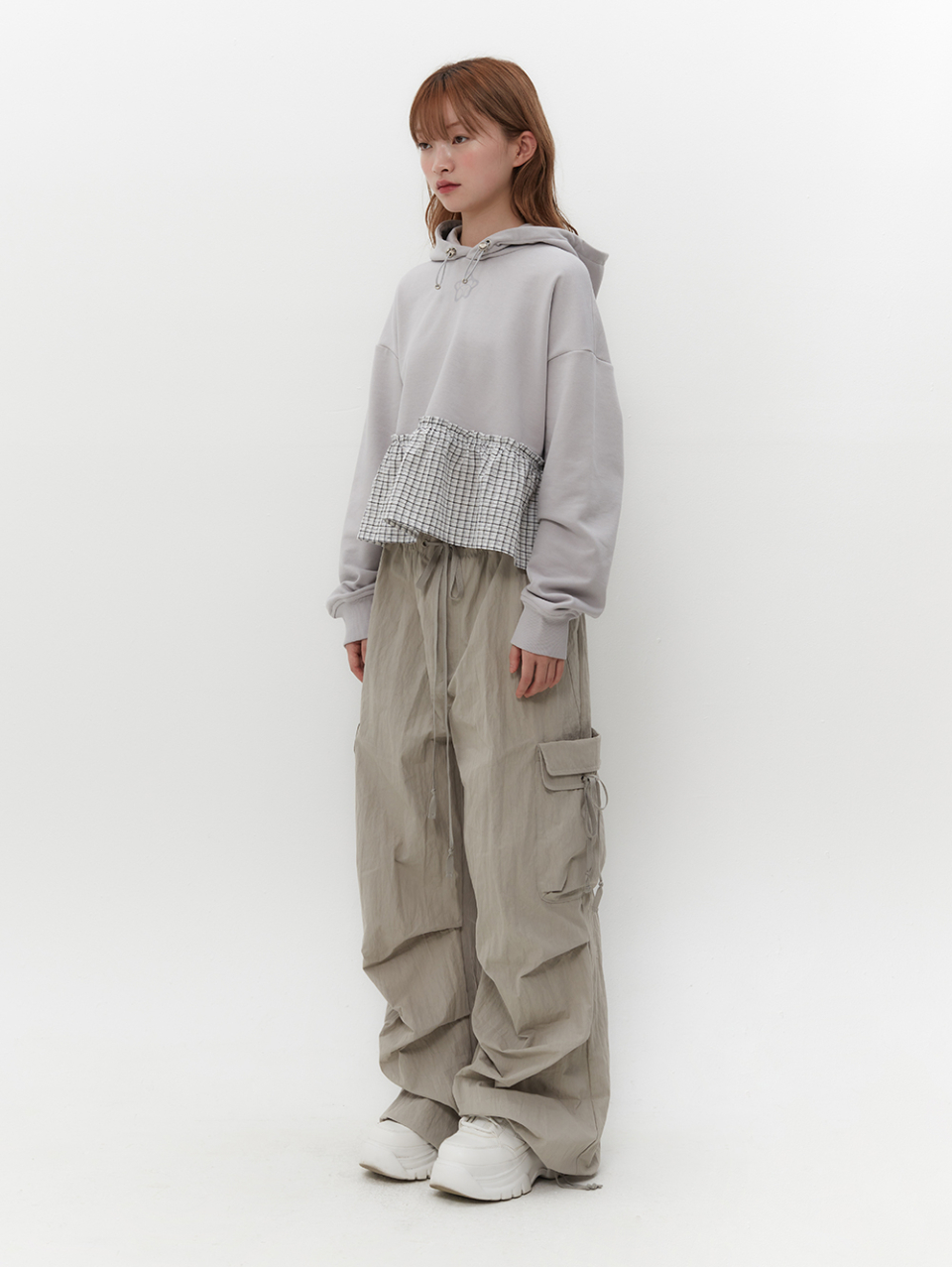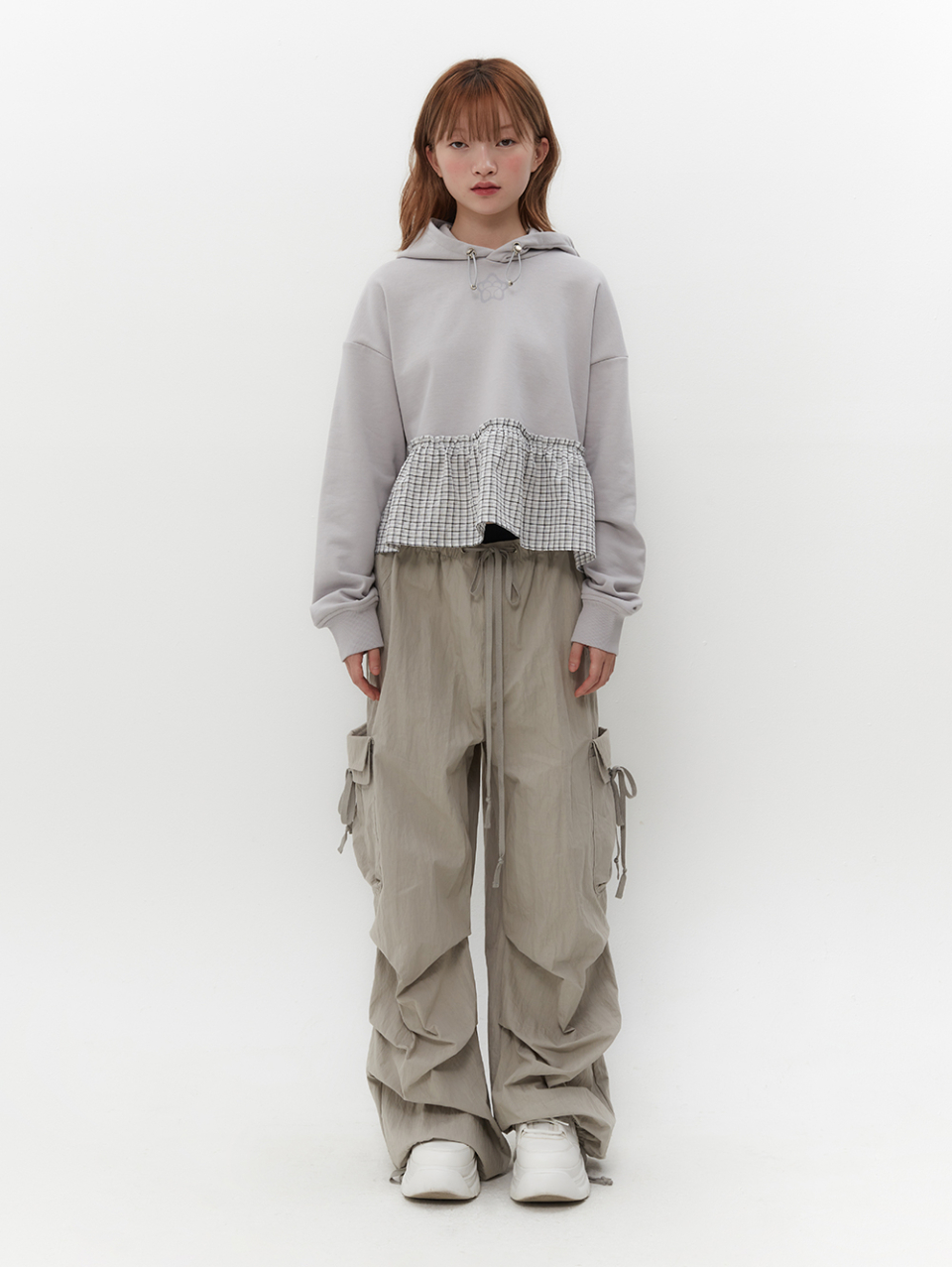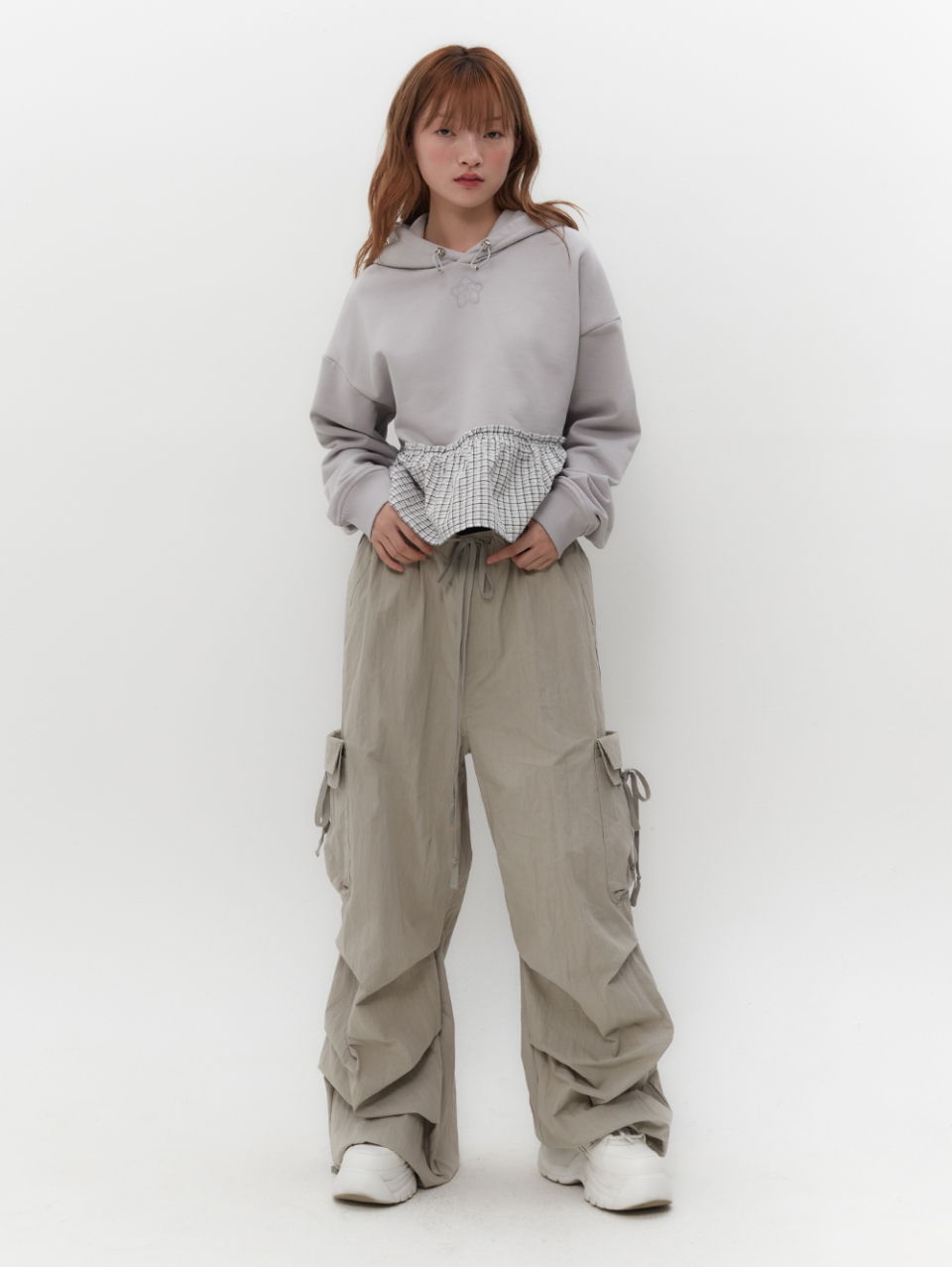 스트랩을 활용하여 허리와 밑단 핏 조절 가능