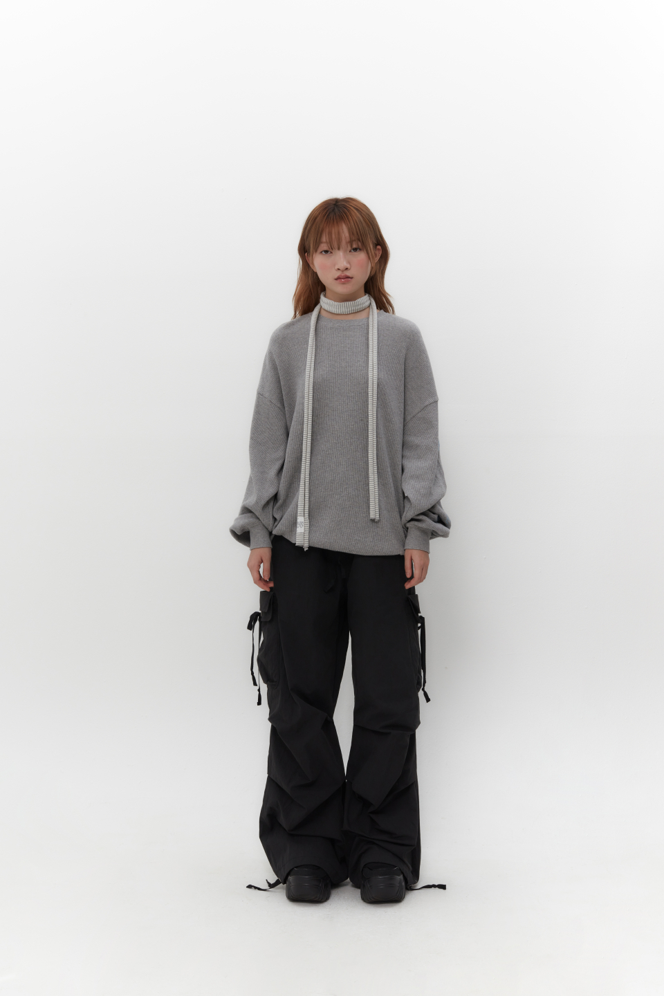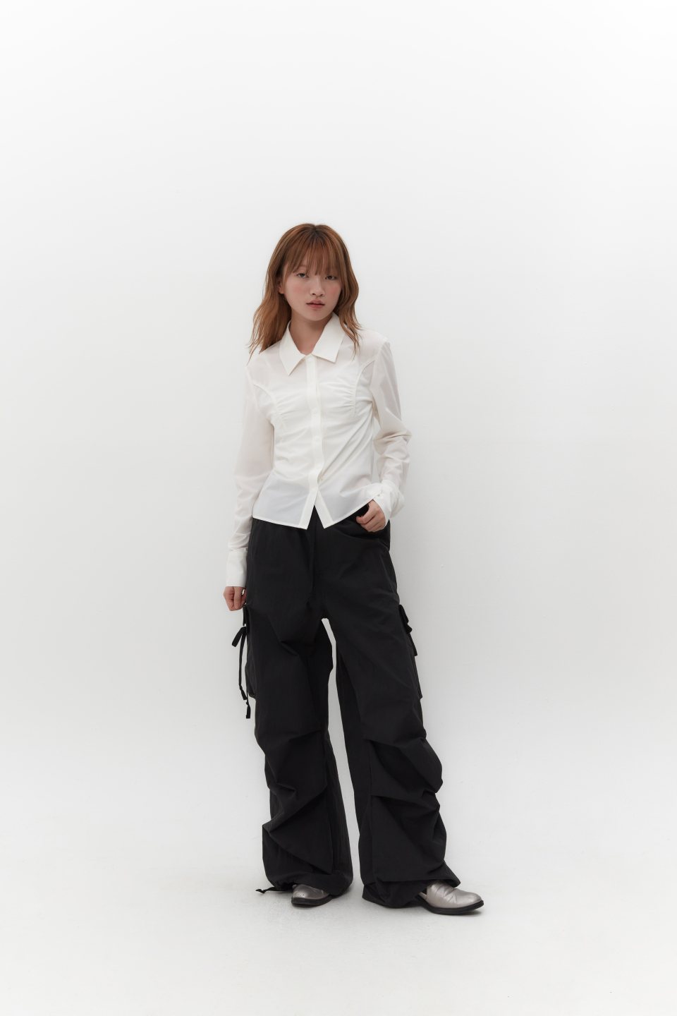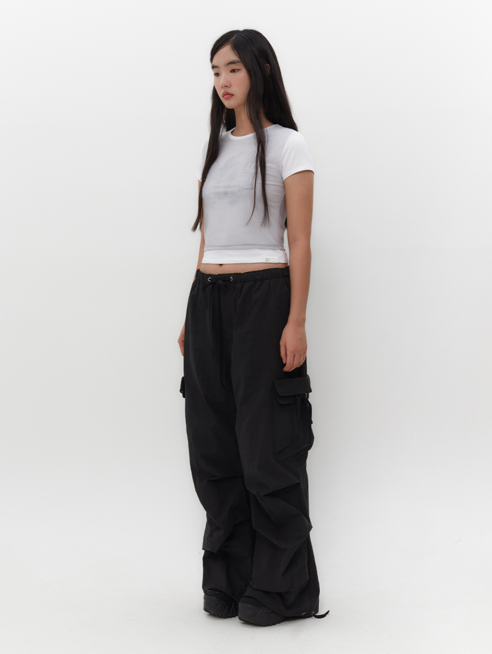 스트랩을 활용하여 허리와 밑단 핏 조절 가능