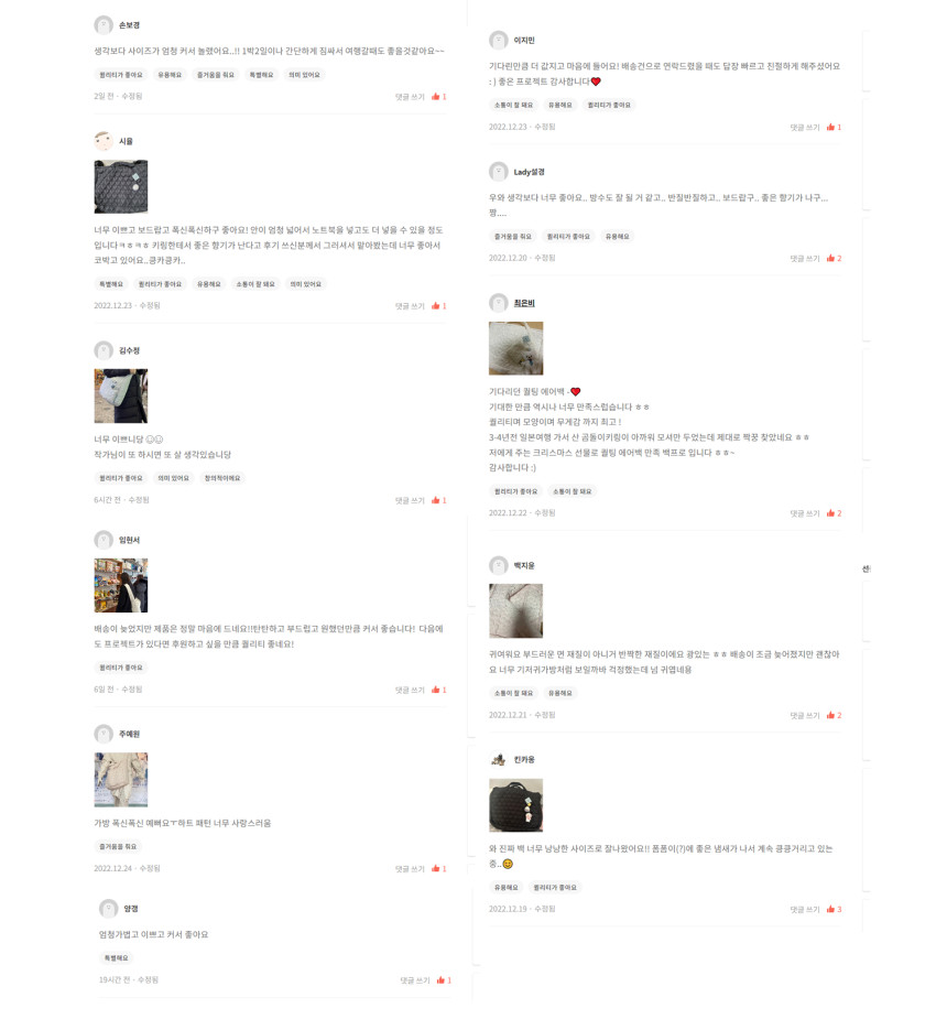 촘촘한 퀼팅으로 부피가 비교적 작고 부드러움