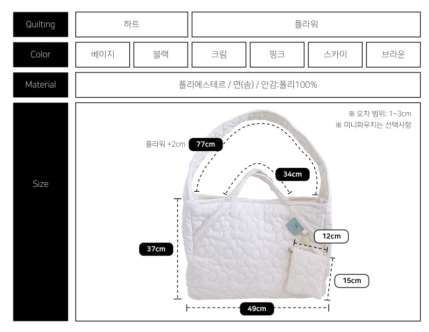 큼지막하고 심플한 퀼팅으로 시원시원하고 사랑스러운 느낌