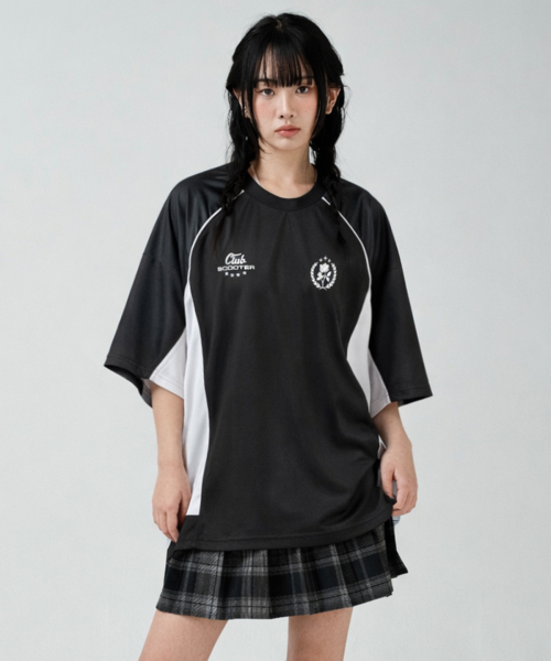 우먼 새틴 풋볼 져지 레글런 티셔츠 블랙 BOCTS851FBK